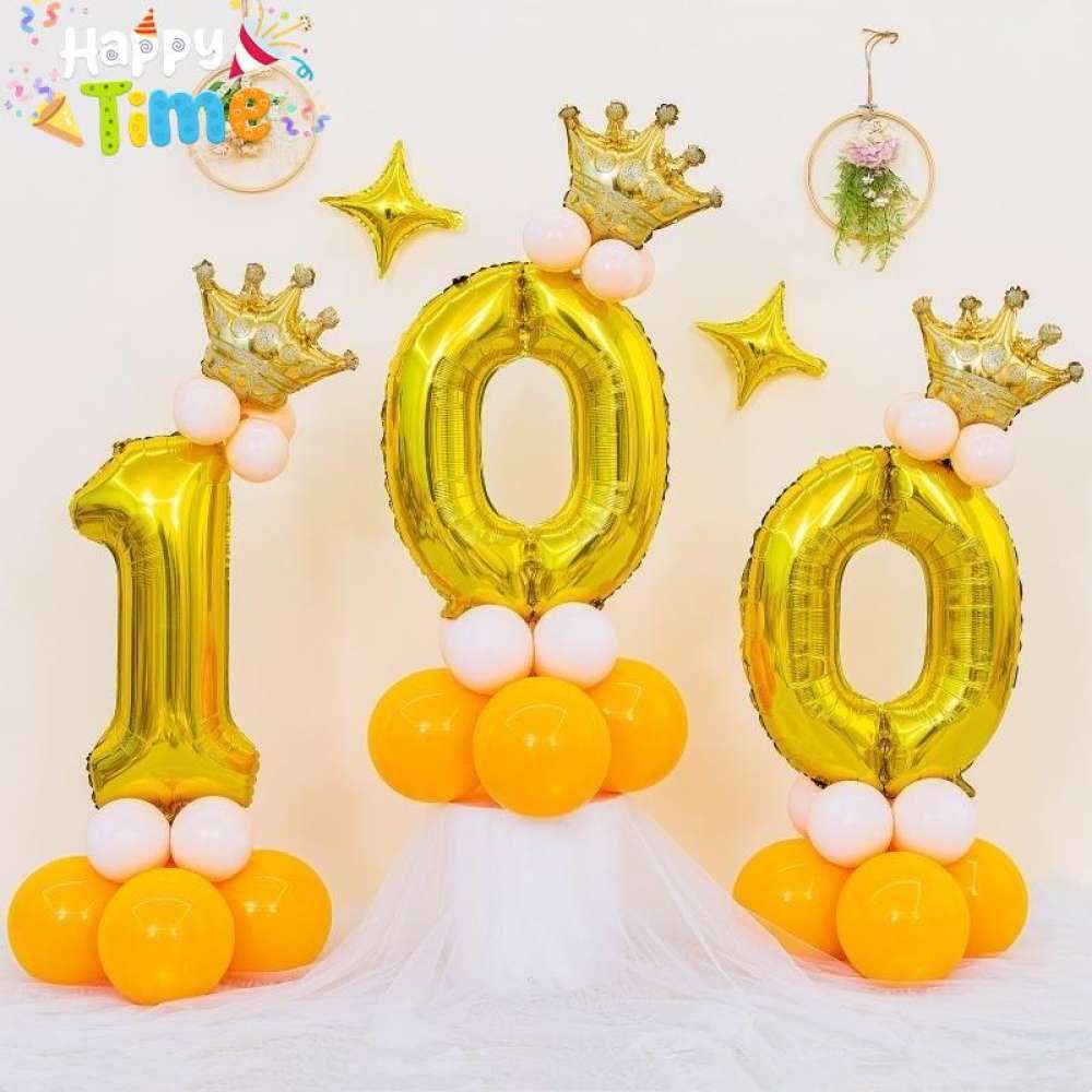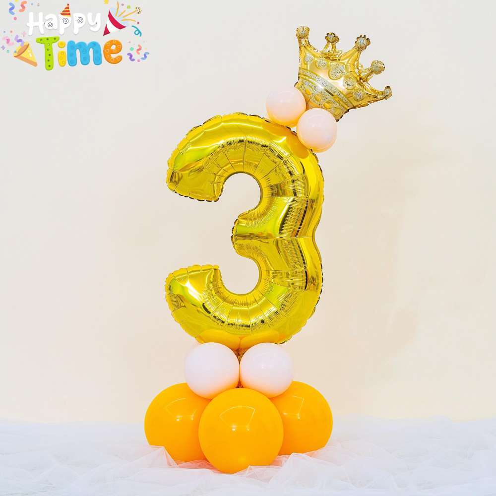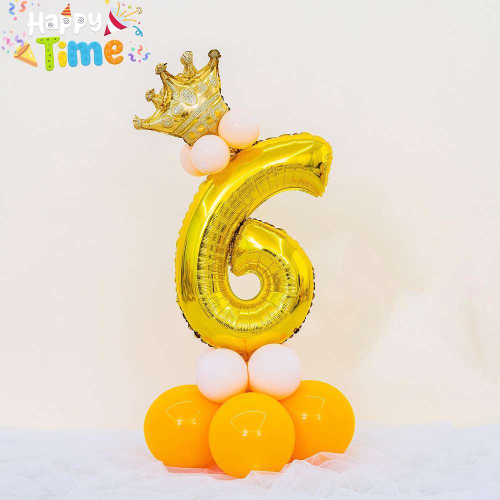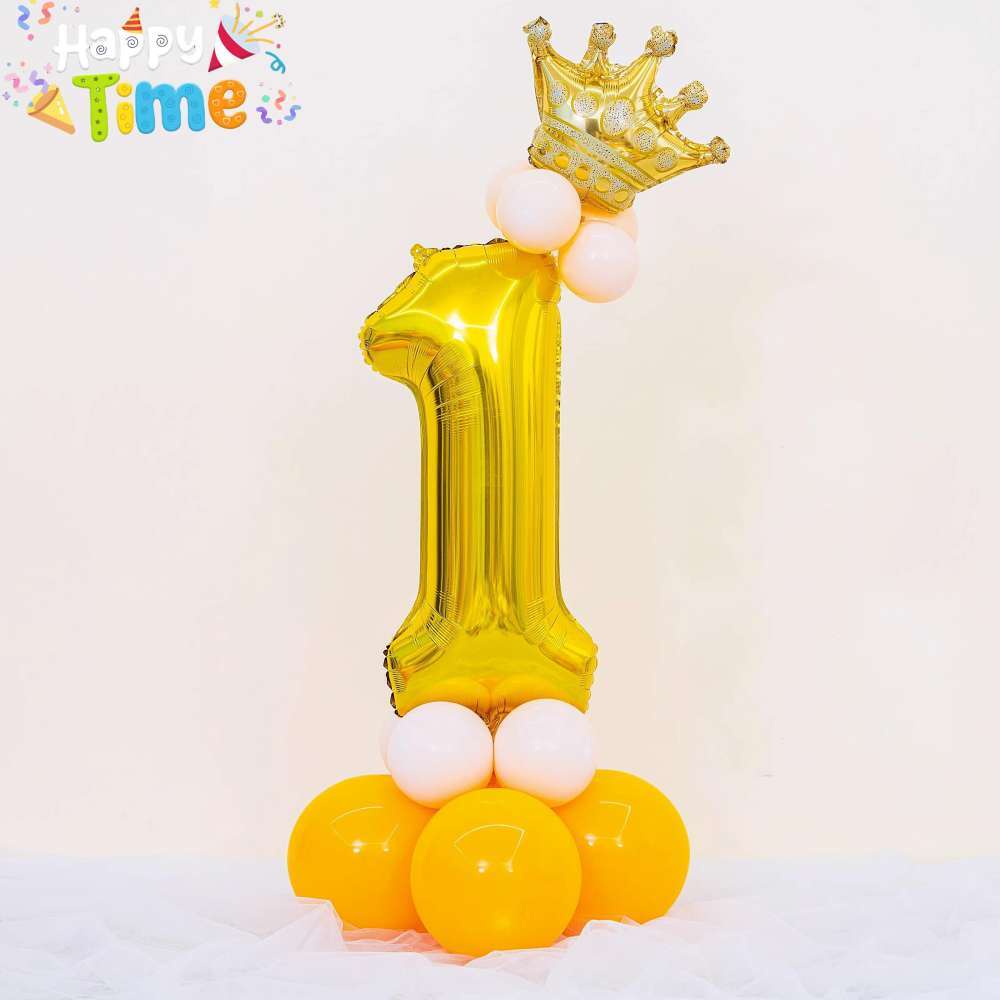 13pcs Crown Gold Balloons Set 32inch Number Ballons Stand Kit Birthday Party Decorations Package Set