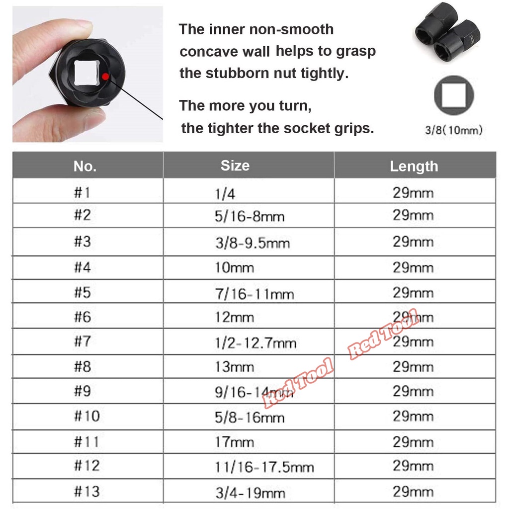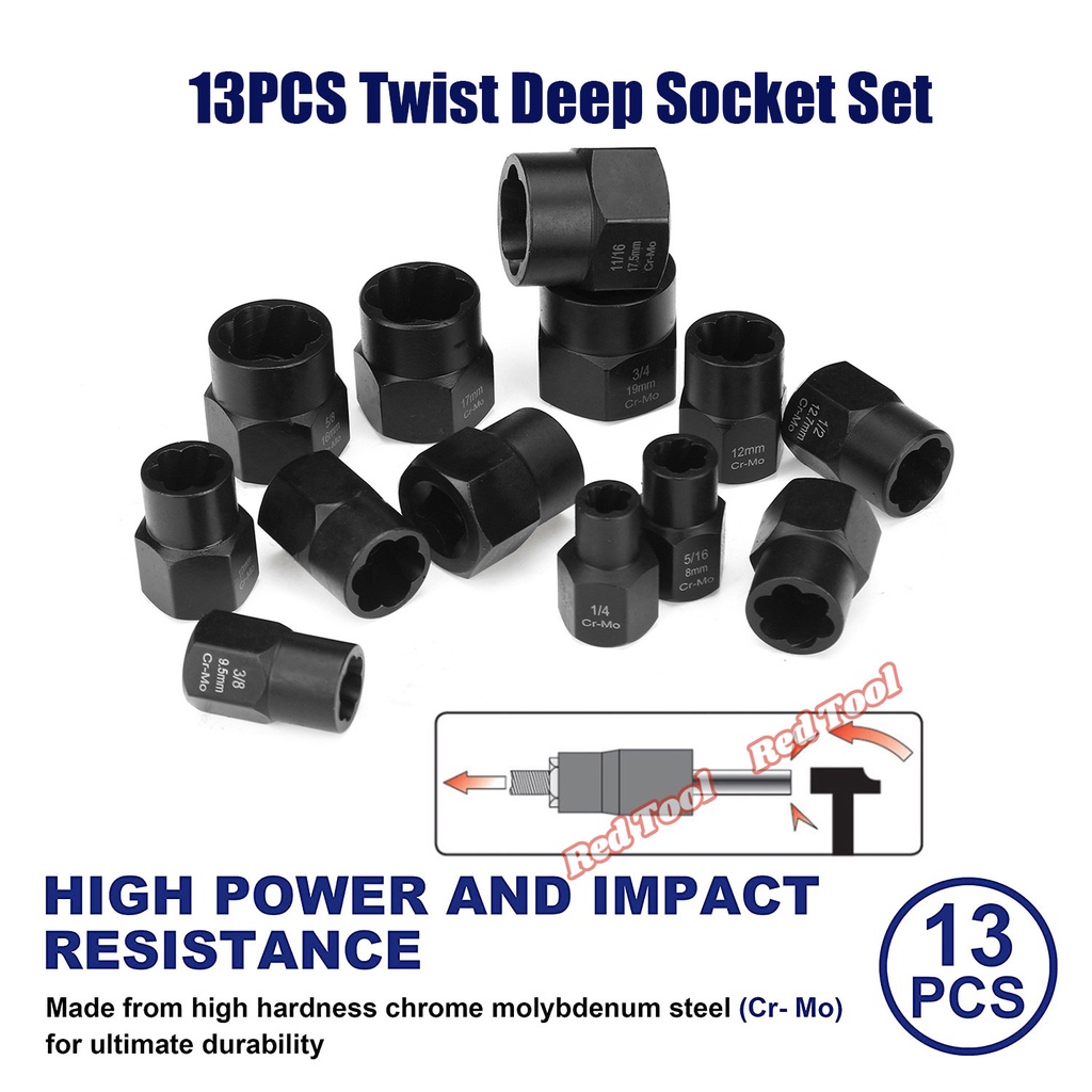 13pcs Impact Damaged Bolt Nut Remover Extractor Socket Tool Set Bolt Nut Screw Removal Socket Wrench