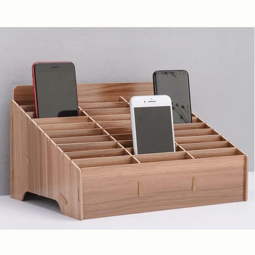 14/30 Grid Wooden Mobile Phone Storage Box Desktop Organizer For Office Classroom