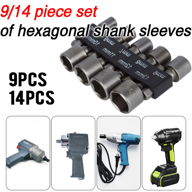 14/9PCS Power Nuts Driver Drill Bit Tools Set Metric Socket Wrench Screw 1/4'' Driver Hex Keys