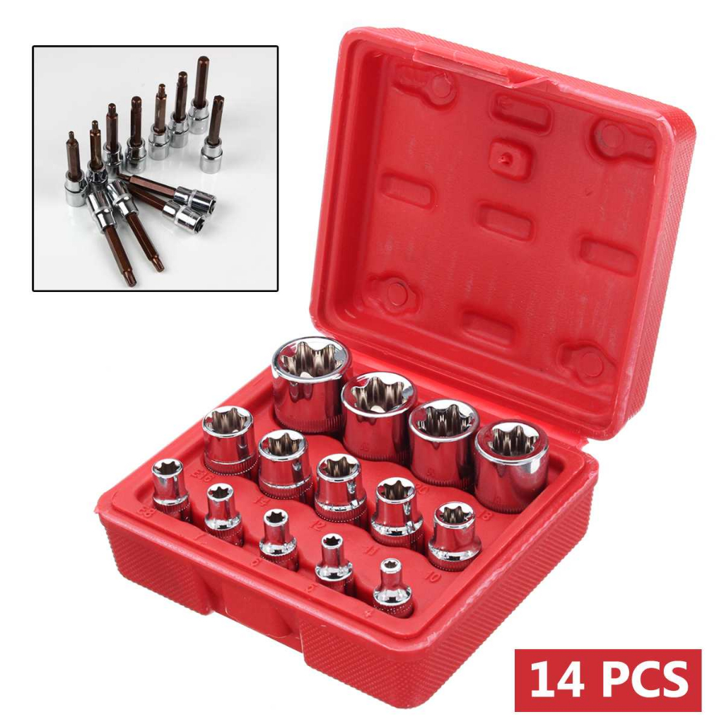 14-Piece Set E-Type 6-Flower Socket Head Combination Wrench 1/2 3/8 1/4 Auto Repair Tool E4-24mm