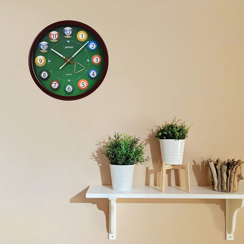 14" Wood Billiard Wall Clock Pool Ball Snooker Game Wall Clock