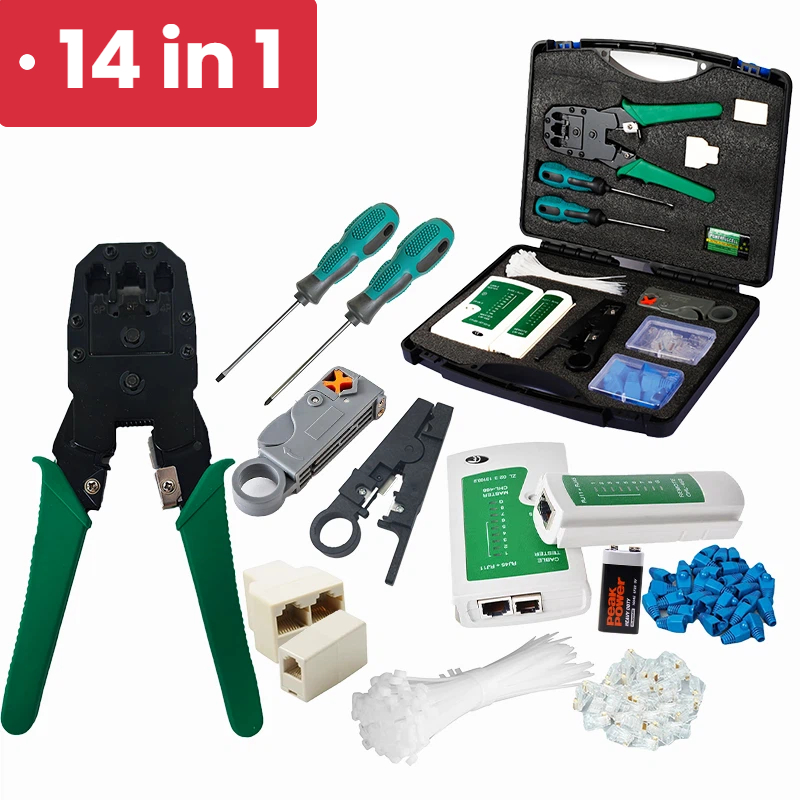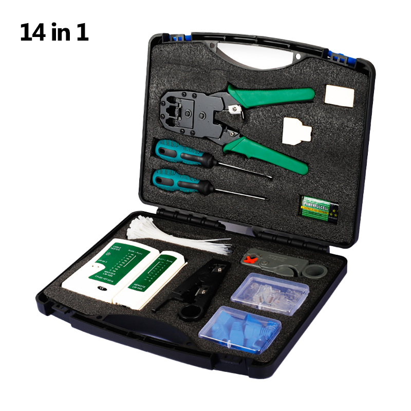14 in 1 RJ45 Cat5e Cat6 Network Ethernet LAN Kit Cable Tester Crimper Crimping Tool Set