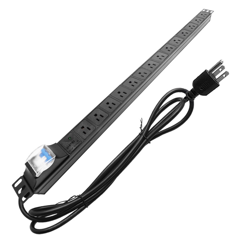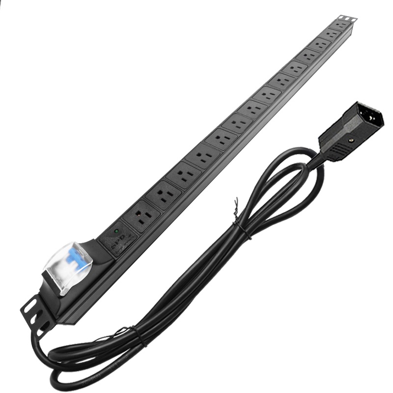 14-position US socket power distribution unit, 16A air switch with surge protector, 2m extension cord US/C14 plug.