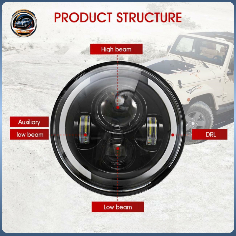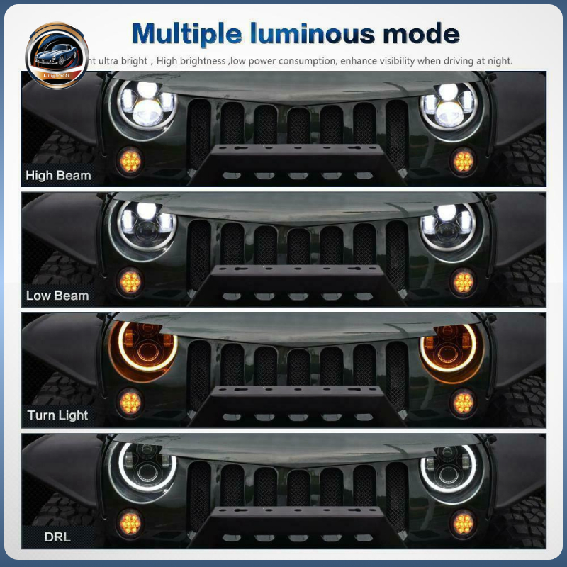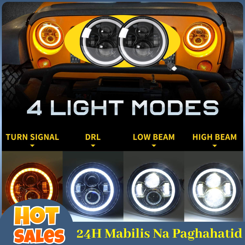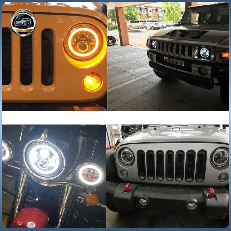 140W 12-24V 7Inch LED Headlights for Jeep DRL Hi/Lo Beam Halo Ring Amber Angel Eye For Niva Motorcy