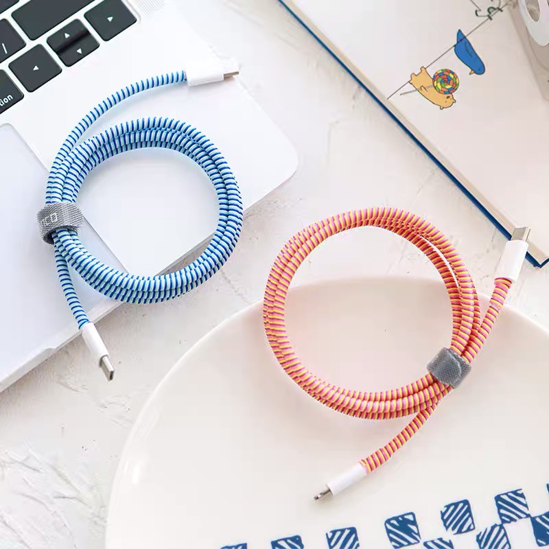 140cm/55inches Spiral Earphone Cord Cable Phone Charging Cable Protector 3Colors in One