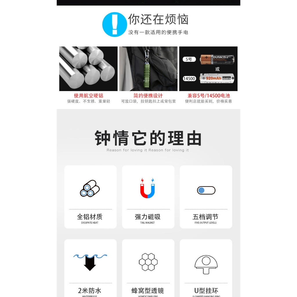 14500 mini flashlight with magnetic tail 760 lumens keychain flashlight Lumintop silver fox 5 modes with memory function