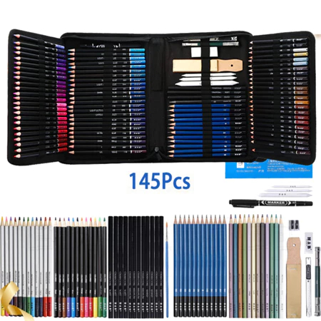 145pcs Sketch Pencil Set Artist Craft Professional drawing pencil Set Kit Graffiti Student Art Supplies