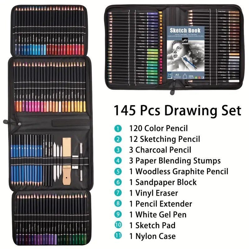 145pcs Sketch Pencil Set Artist Craft Professional drawing pencil Set Kit Graffiti Student Art Supplies