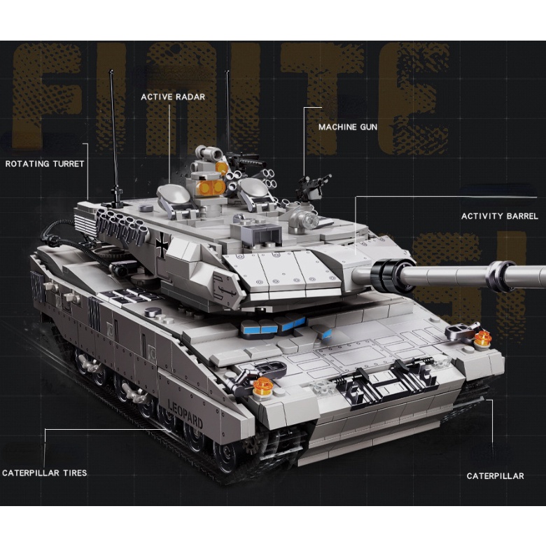1498PCS MOC WW2 Leopard 2A7 Treads Tank Model Toy Building Block Brick Gift Kids New Set