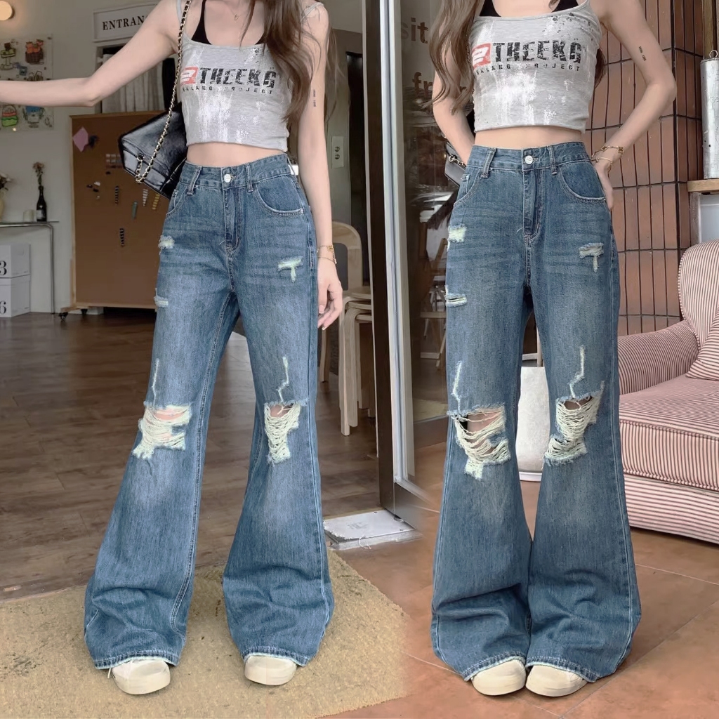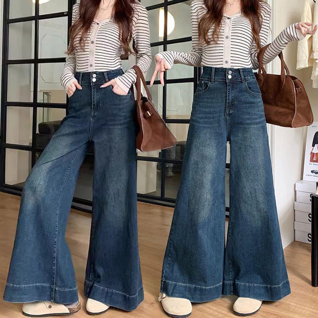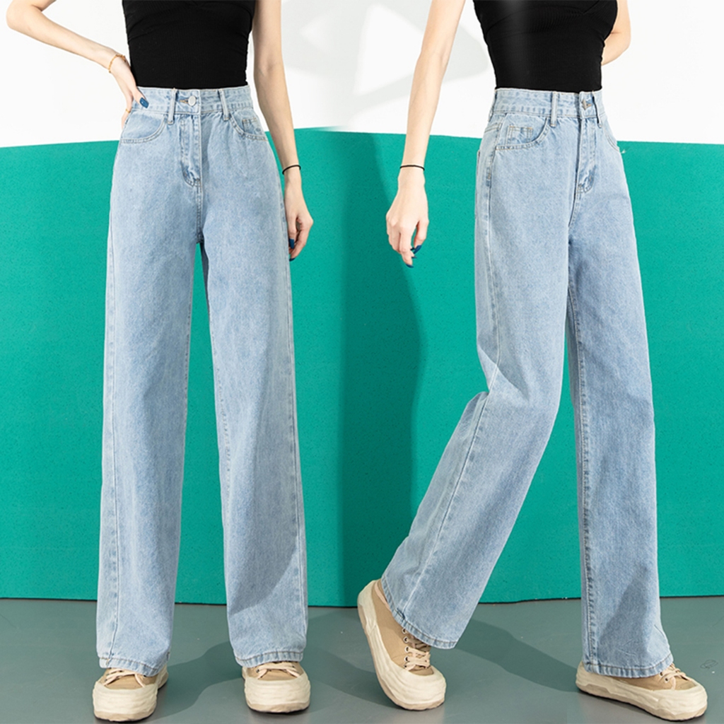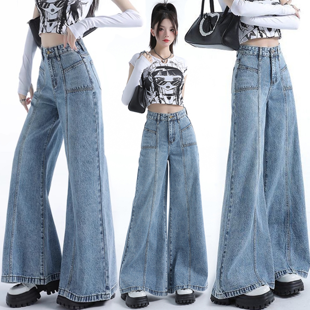 Pants Long jeans blue denim Slim Fit straight Bell bottoms loose Korean highwaist casual bigsize HOT