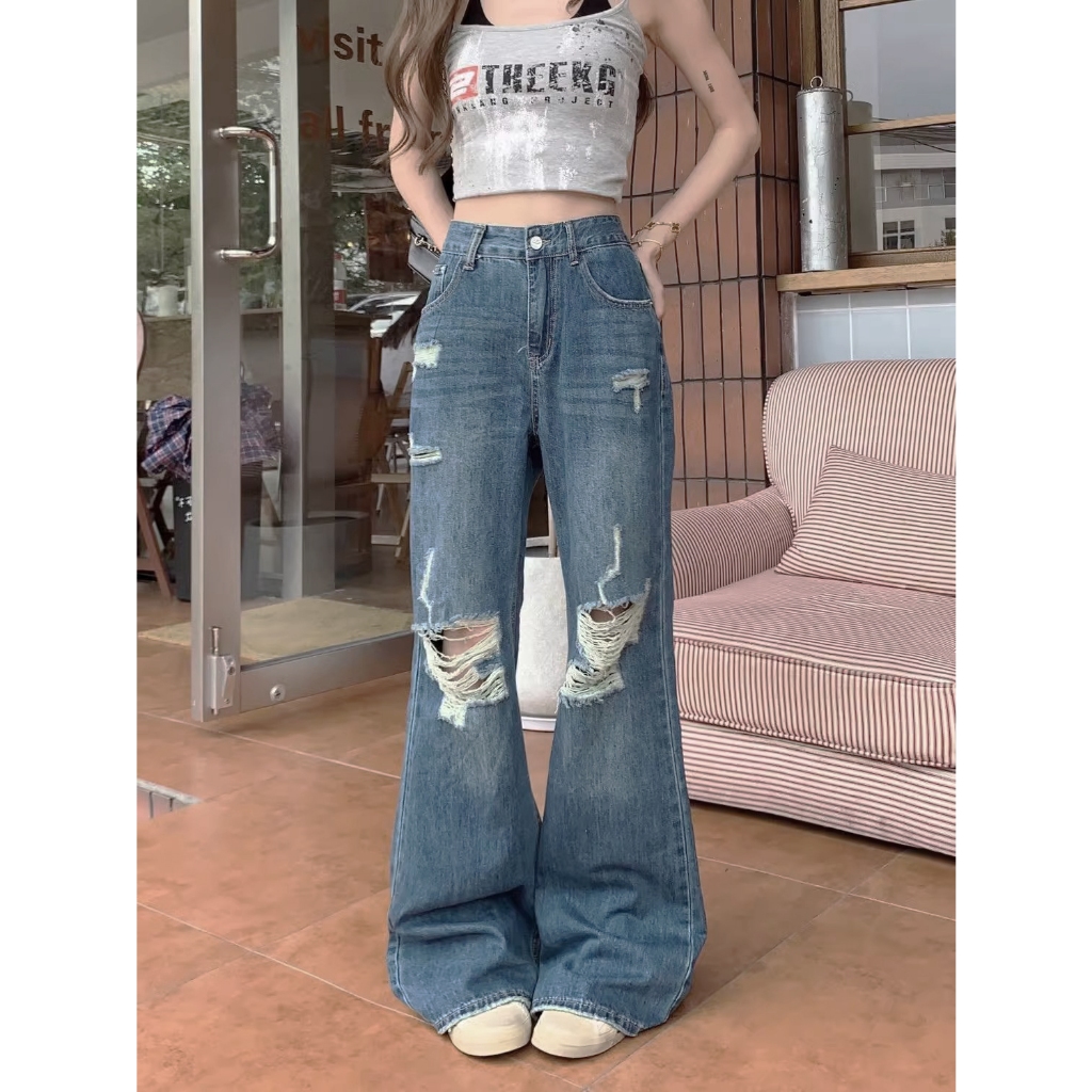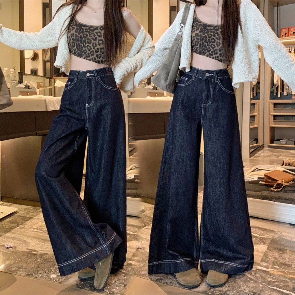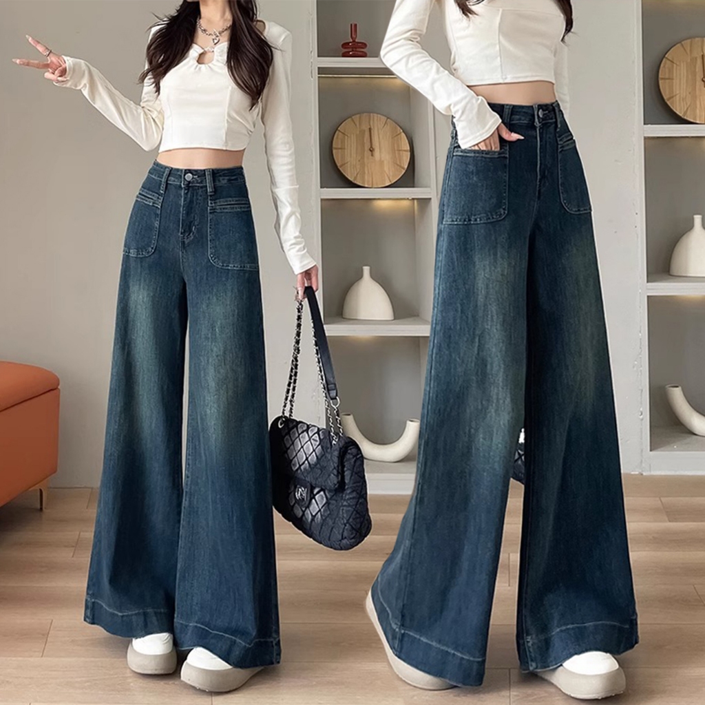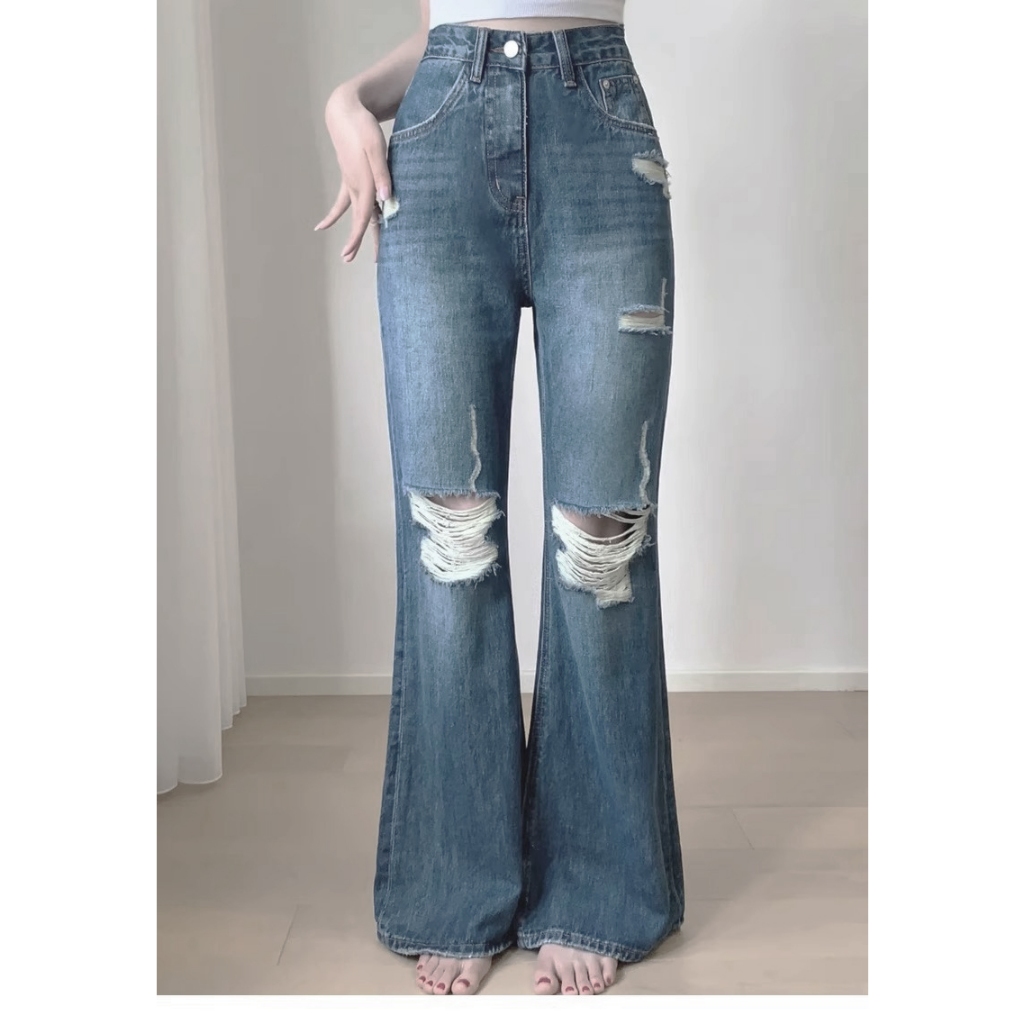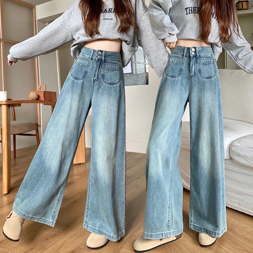 Pants Long jeans blue denim Slim Fit straight Bell bottoms loose Korean highwaist casual bigsize HOT
