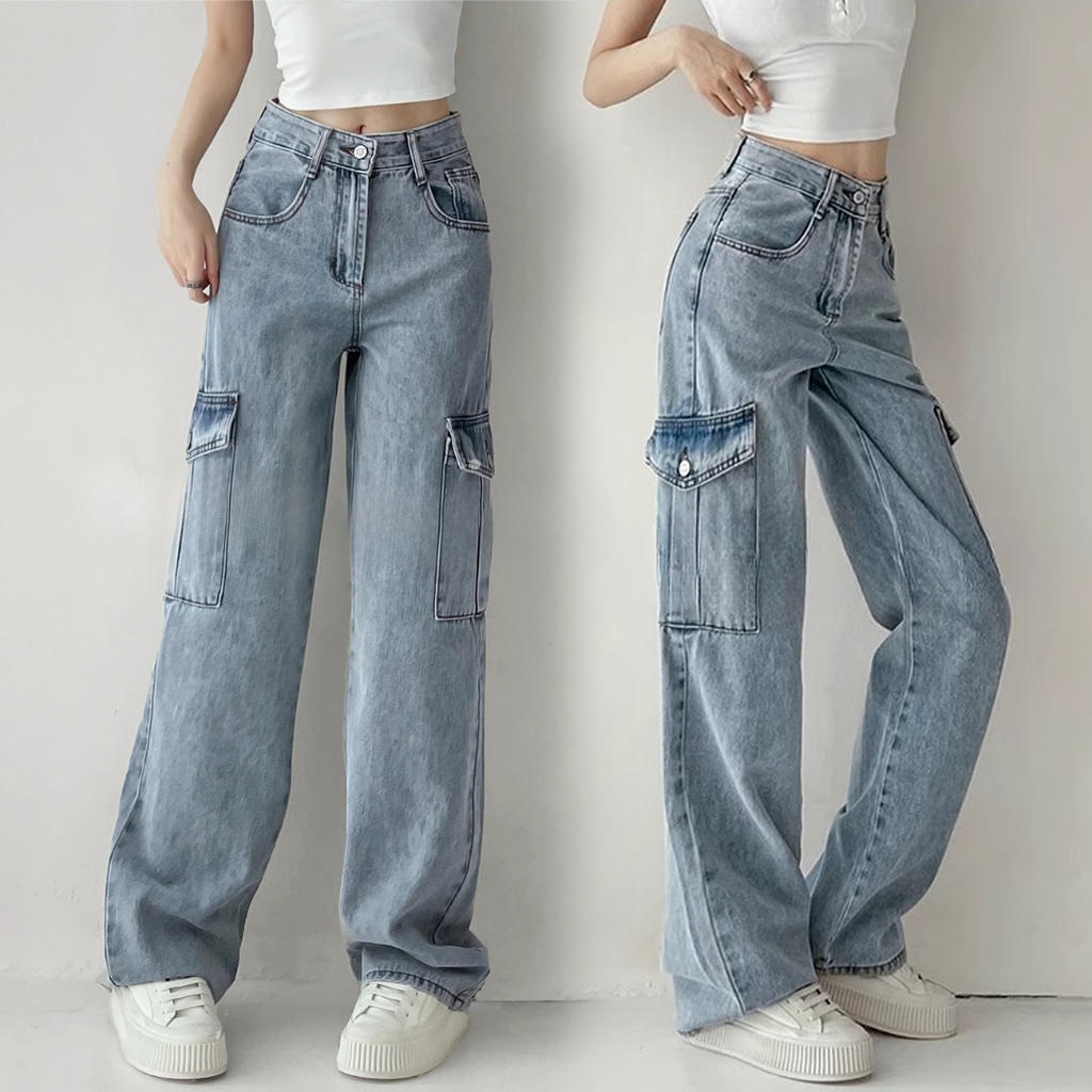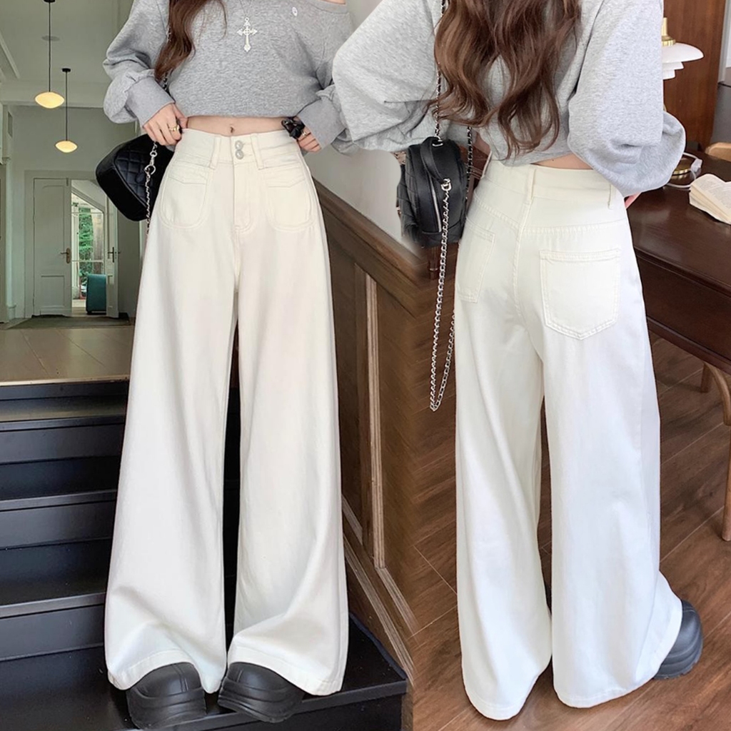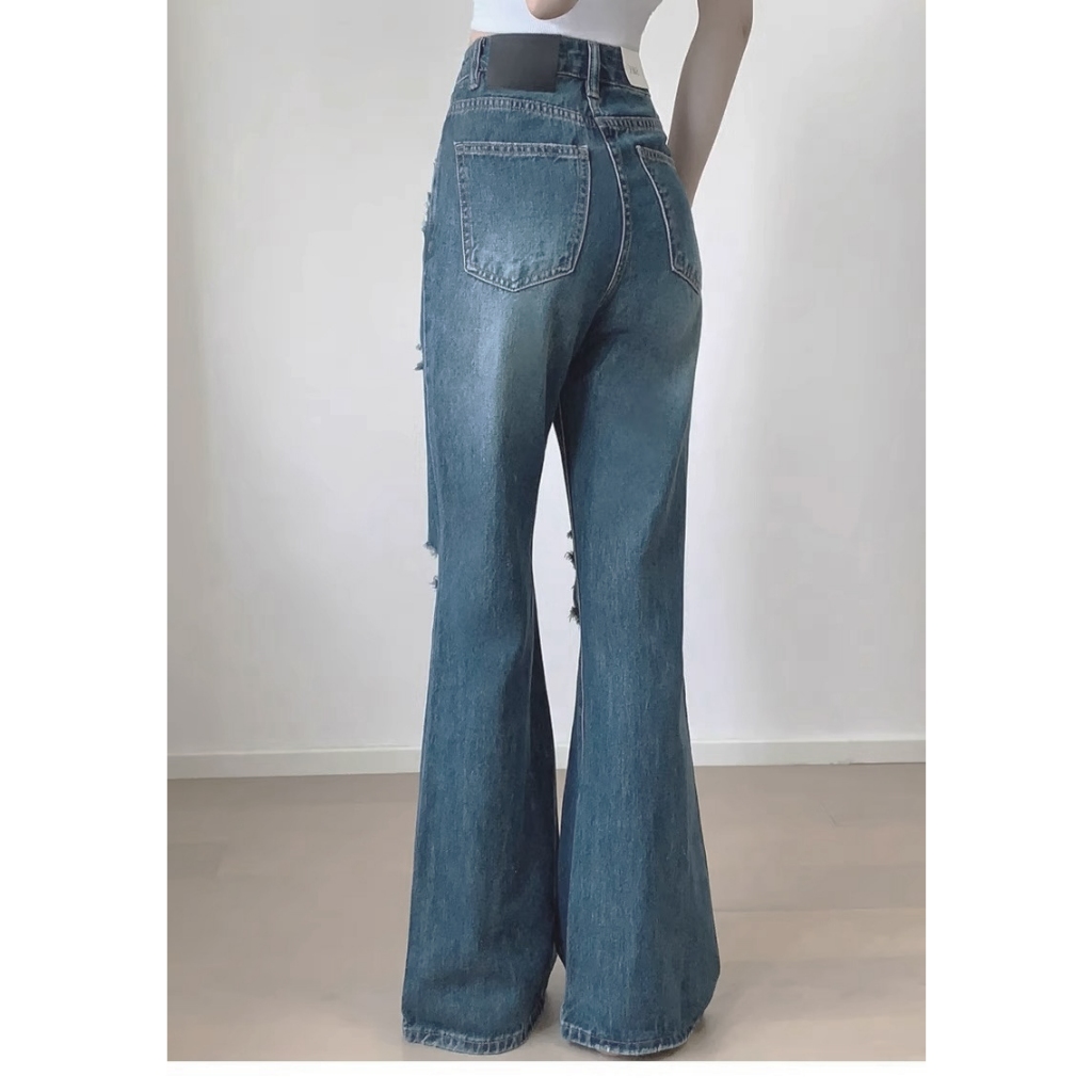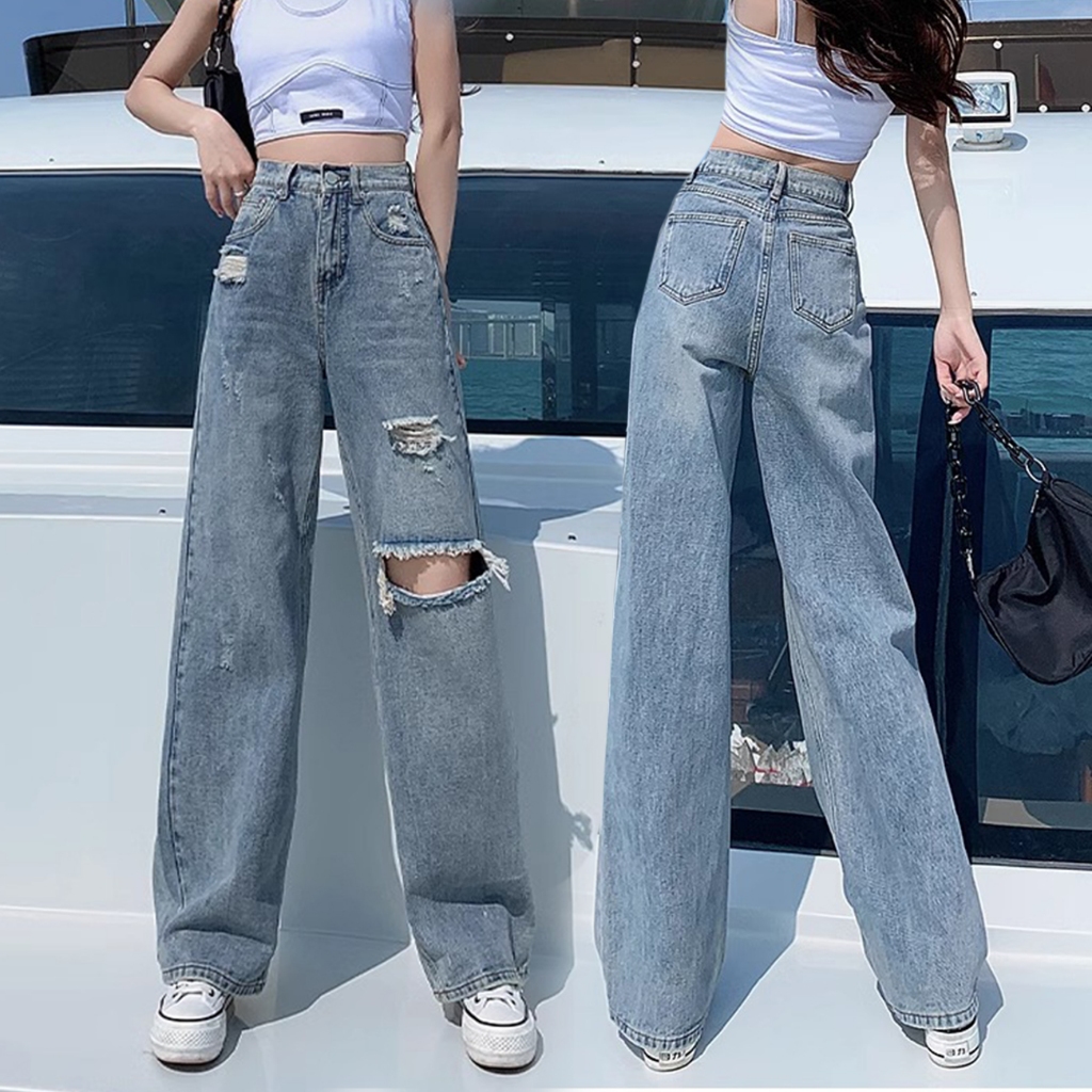Pants Long jeans blue denim Slim Fit straight Bell bottoms loose Korean highwaist casual bigsize HOT
