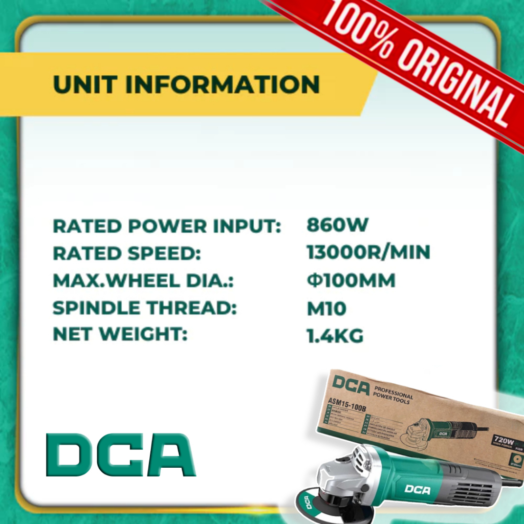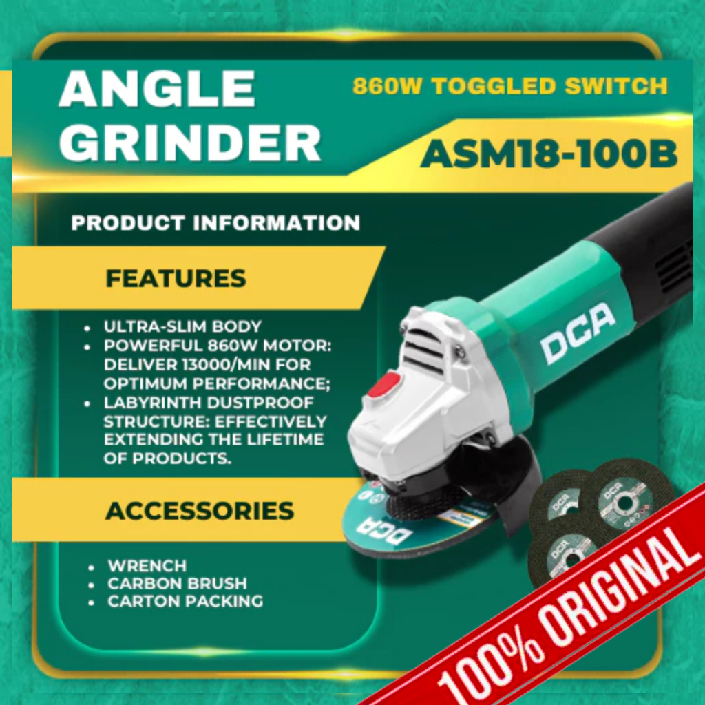 DCA ASM18-100B Angle Grinder (Toggled Switch) 860W - Powerful Handheld Tool for Grinding and Polishi