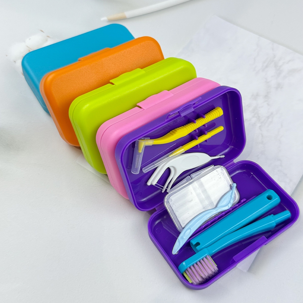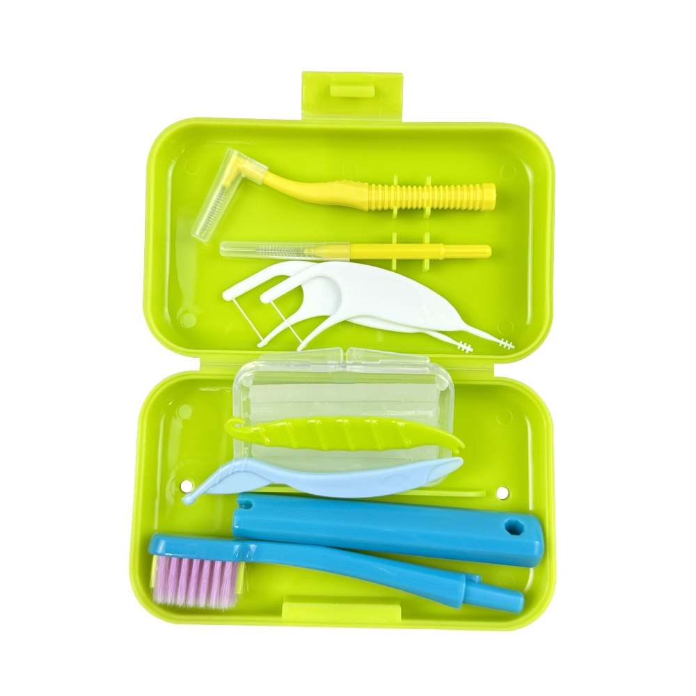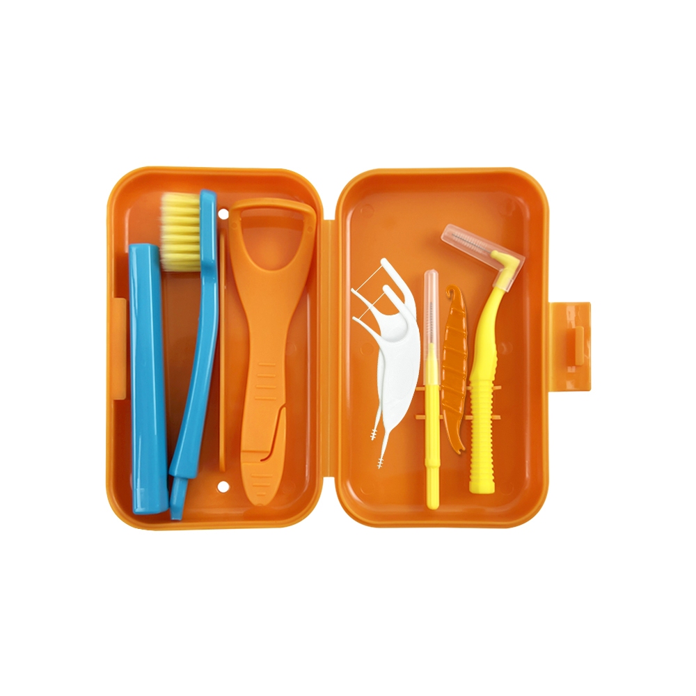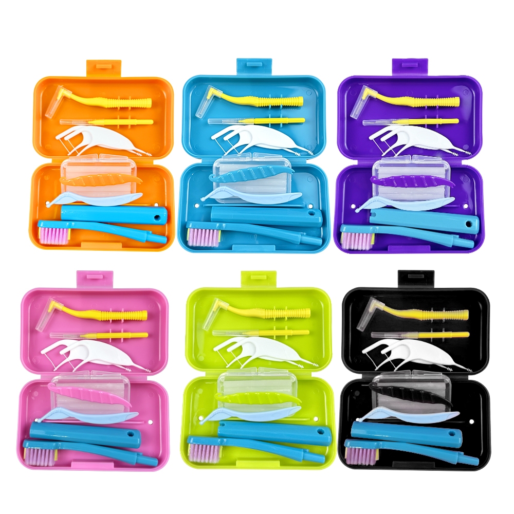1Set Dental Cleaning Care Kits Portable Travel Oral Cleaning Kits Detachable Toothbrush Interdental Brush Tongue Scraper Storage Case