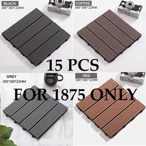 15 PCS Floor Decking Tiles DIY Wood Plastic Composite Wood Deck Tiles Outdoor Deco for Balcony