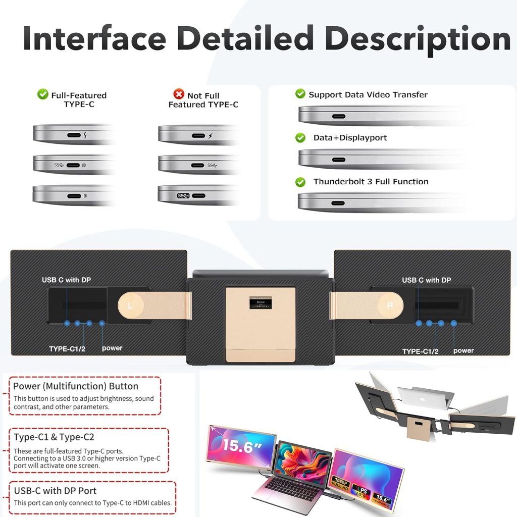 15.6-inch high-definition portable display, suitable for mobile phones, laptops extended screens
