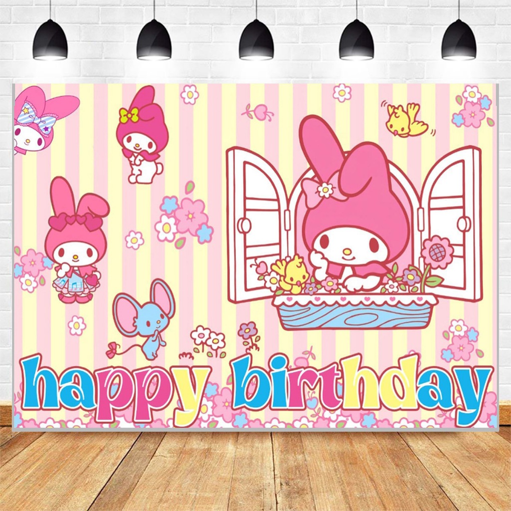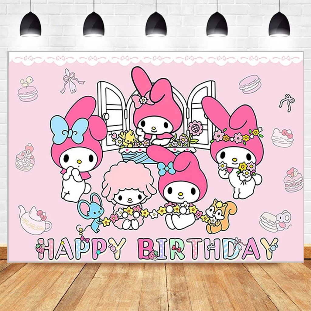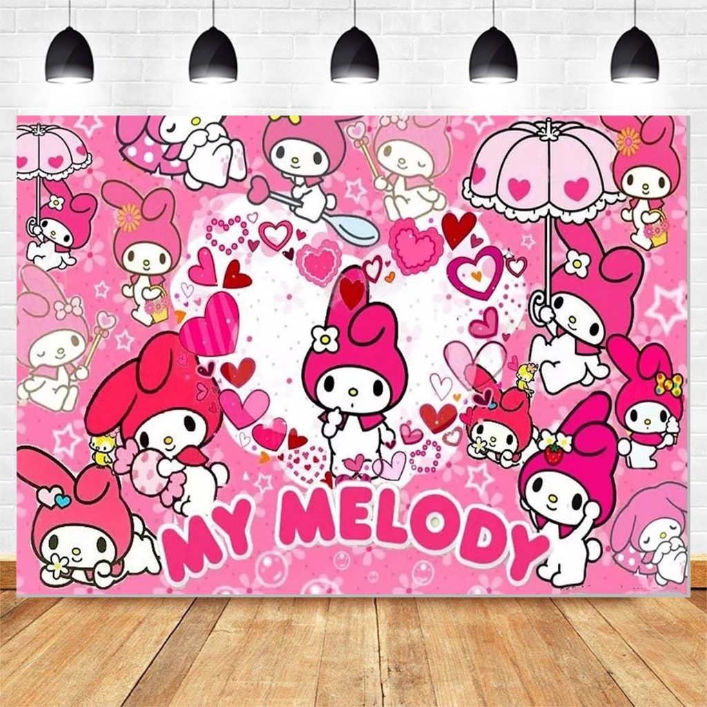 150*100cm Melody Theme Party Backdrop Cloth Cartoon Photography Background Birthday Party Decoration Party Supplies