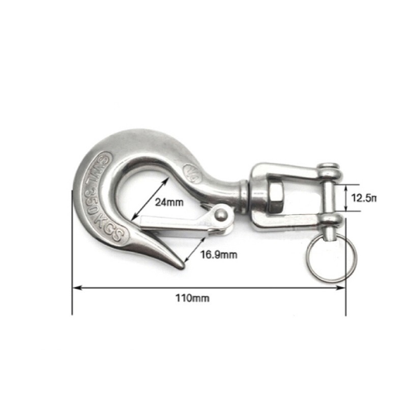 150/350KG Swivel Eye Lifting Clevis Grab Hook Stainless Steel Heavy Duty Chain Snap Hook With Latch