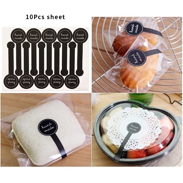 150-80Pcs Stickers Long Style Handmade Stickers Cake Packaging Sealing Labels Black Stickers Handmade Gift Stickers