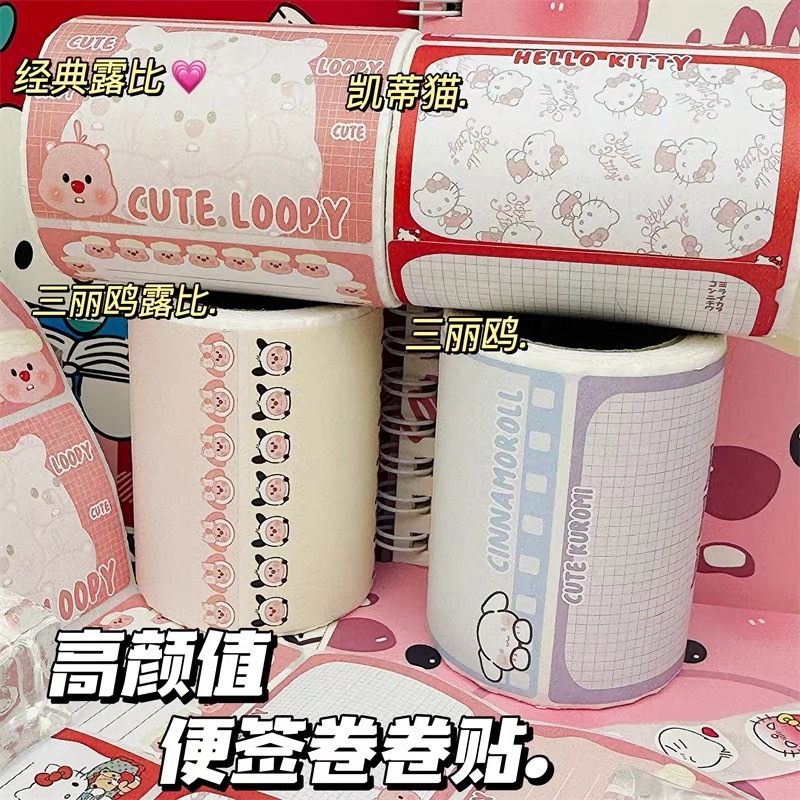 150 Cute Sticky Notes Cartoon Roll Notepad Cartoon Sticky Message Sticker Student Notepad Note Mark Creative Stationery Gift Prizes Students' Supplies Office Supplies