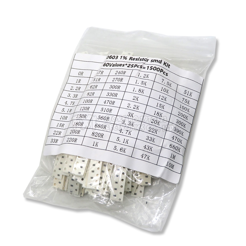 1500 Pcs SMD 0603 Resistors Assorted Set (60 Values x 25Pcs) 0ohm - 10M Ohm 1/10 Watt 1% High Precision Film Chip Resistance Kit