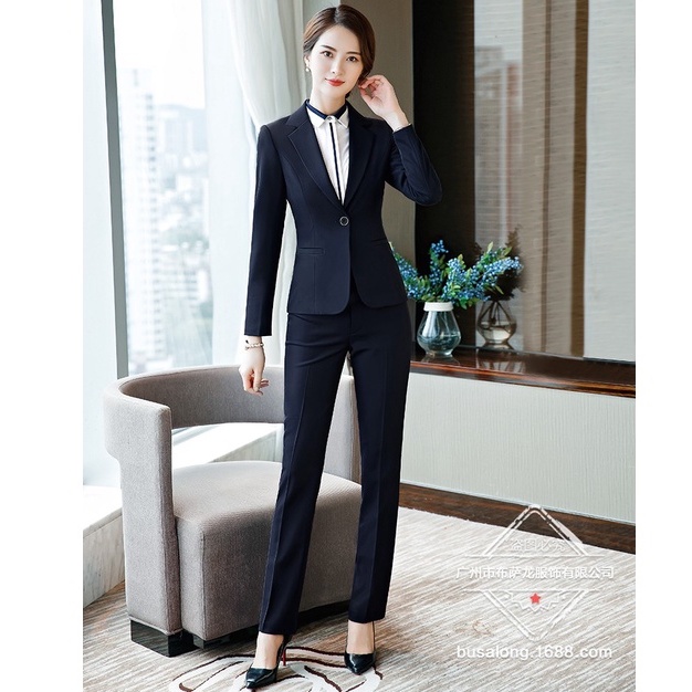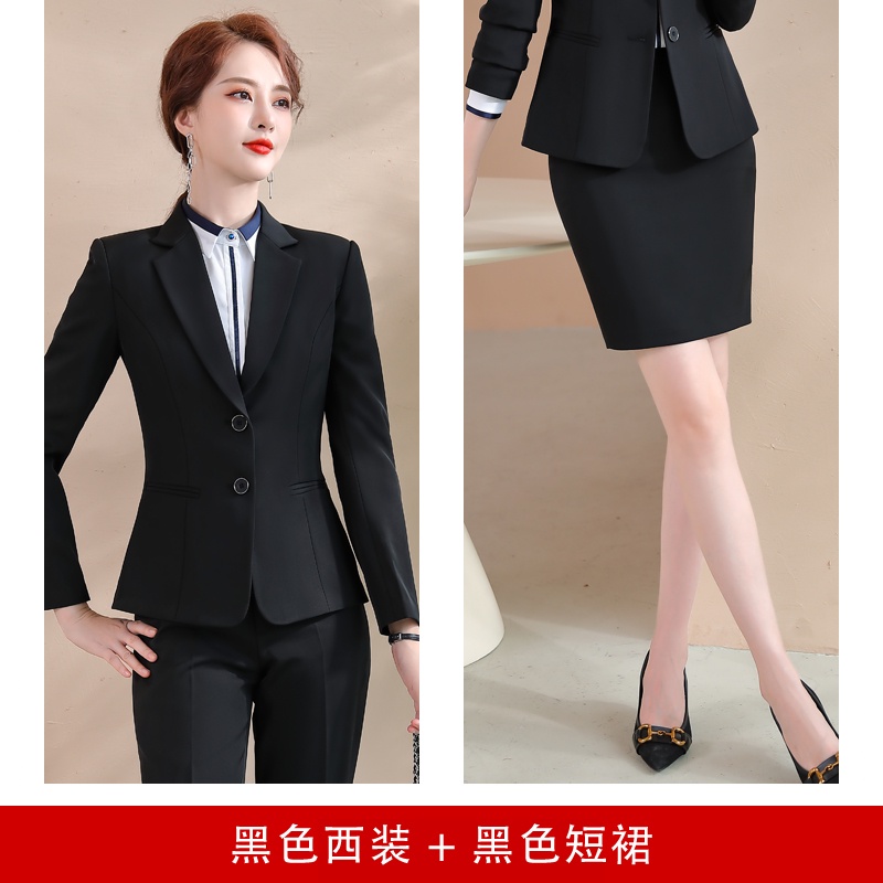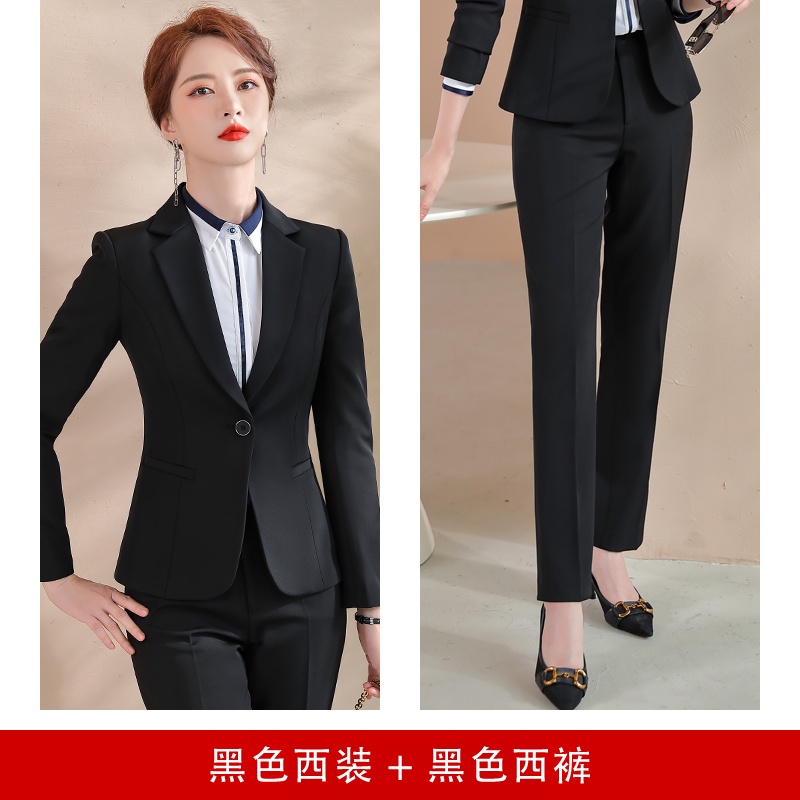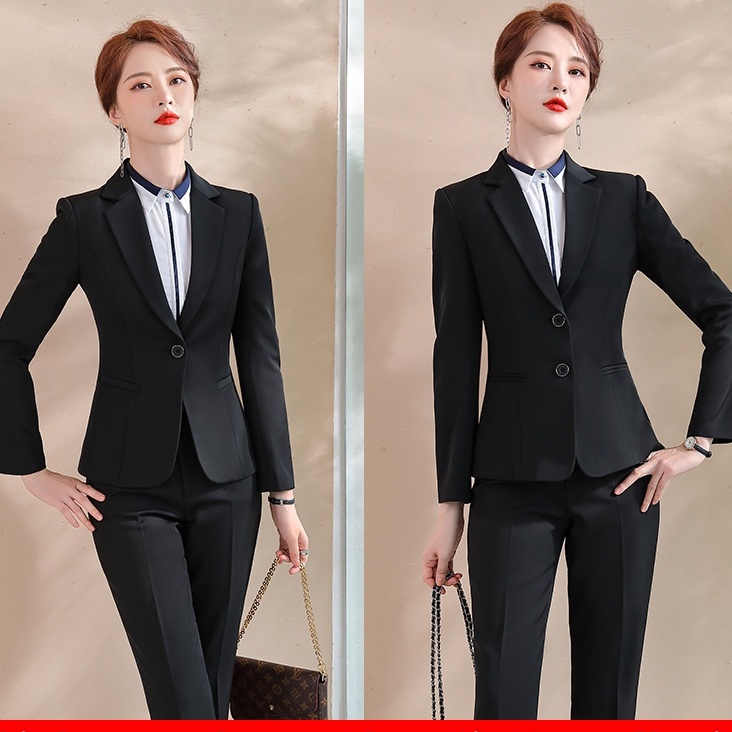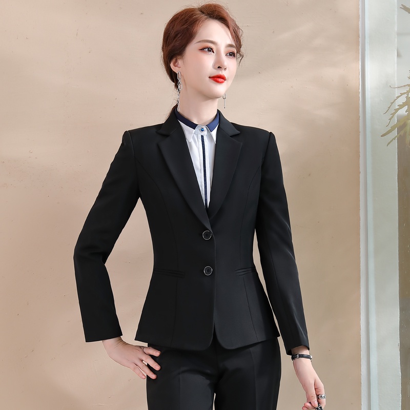 1502 Black business suit female fall winter fashion temperament goddess style student interview hotel front desk work formal wear suit Personal suits, suits, work clothes
