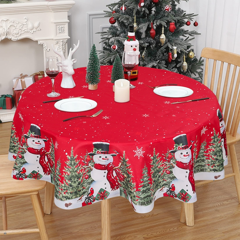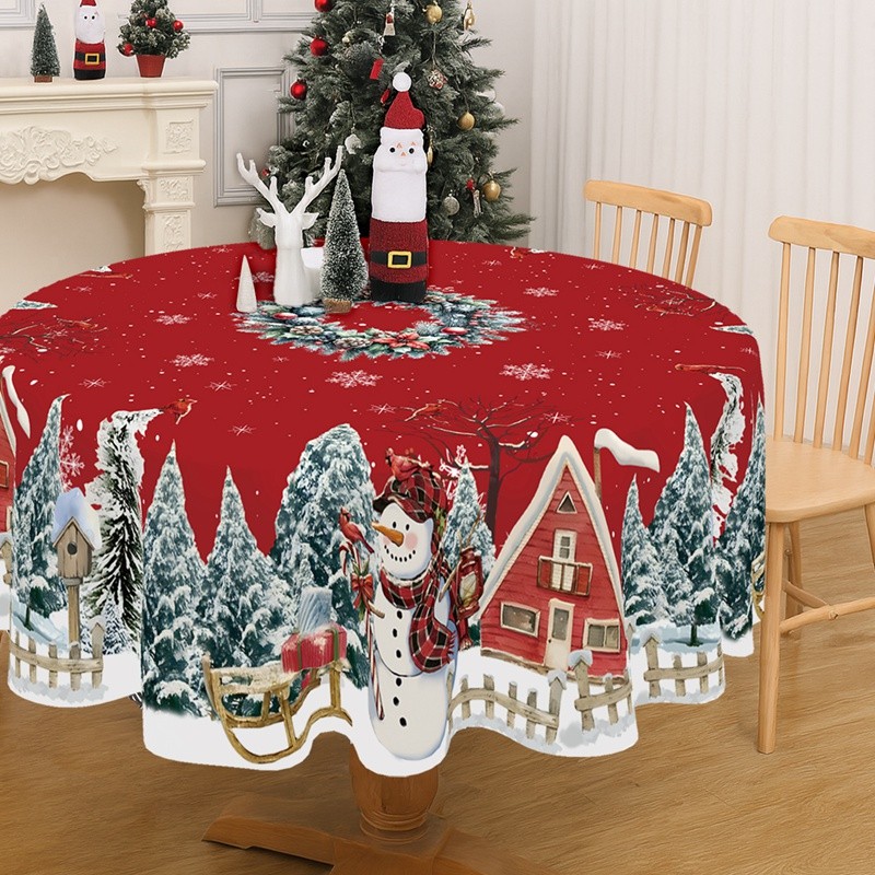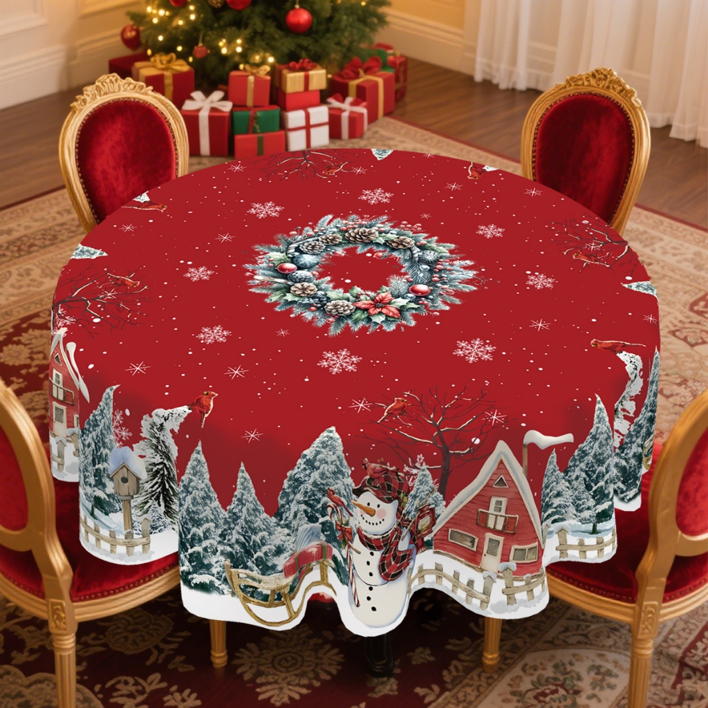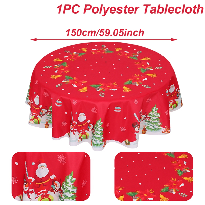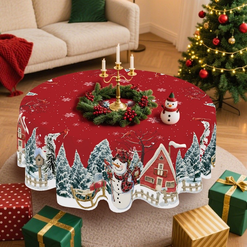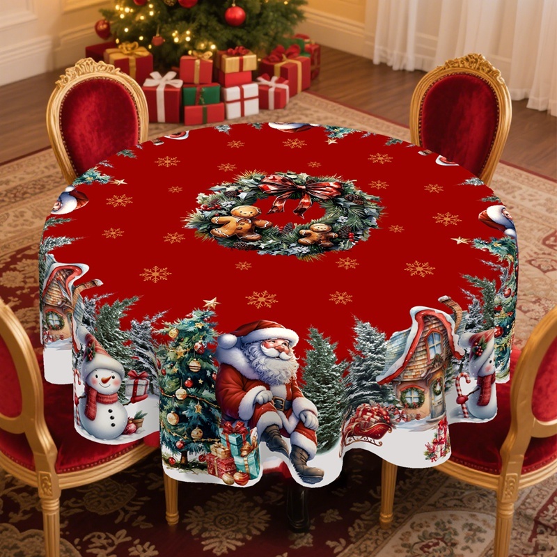 150Cm Round Christmas Table Cloth 6 Seater Santa Claus Wreath Snowman Red Table Cover Merry Christmas Decorations For Home 2025 Table Decor Party Favors