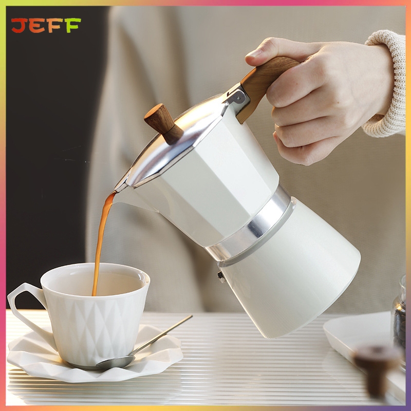150ML/300ML Mocha Pot Italian Mocha Coffee Handmade Coffee Pot Wooden Handle Mocha Coffee Pot