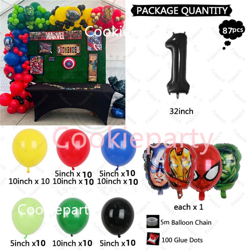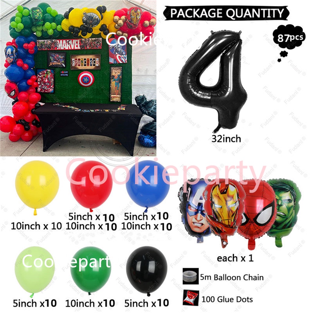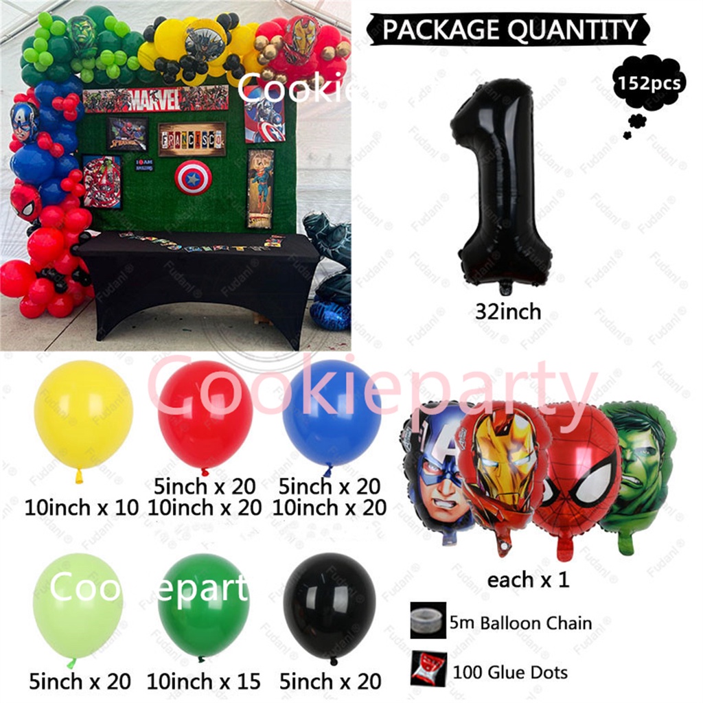 152pcs/87pcs Avengers Balloons Set Kids Birthday Party Decoration Superhero Spiderman Iron Man Hulk Inflatable Globos