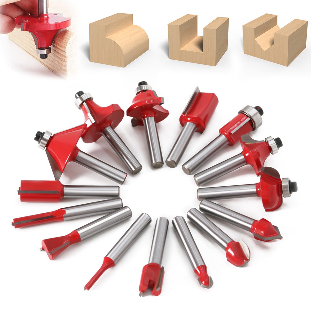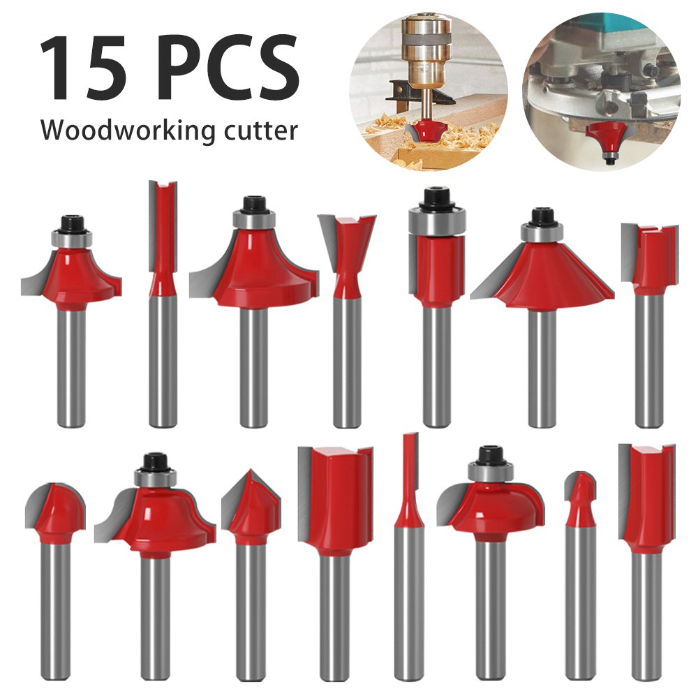 15PC 1/4 inch Shank Tungsten Carbide Tipped Router Bits Set Woodworking Milling Cutters router blade