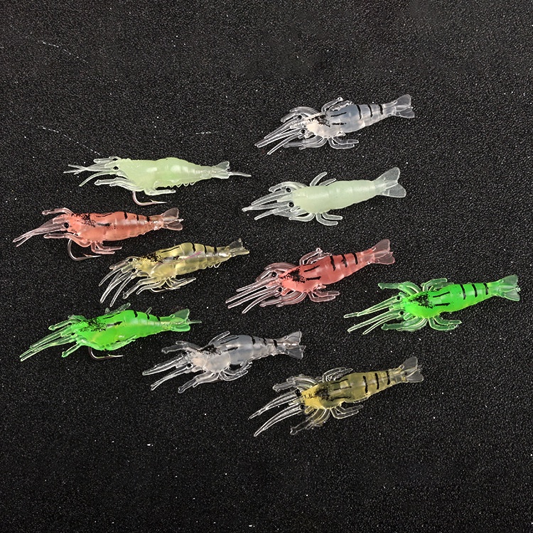 15Pcs Shrimp Lure With Hook and Free Lure Box 5 Color Soft Bait Fishing Lure Artificial Bait Outdoor