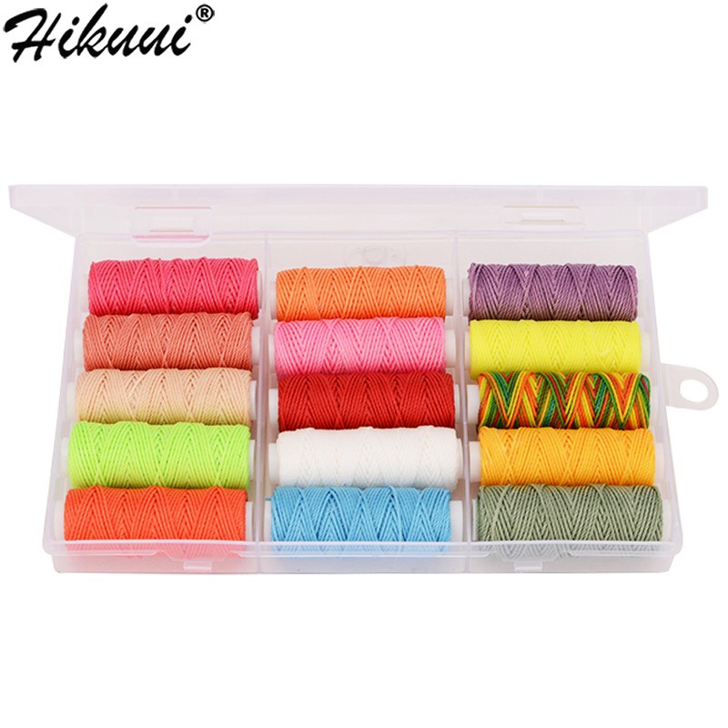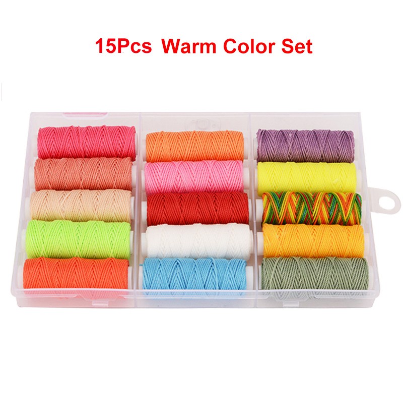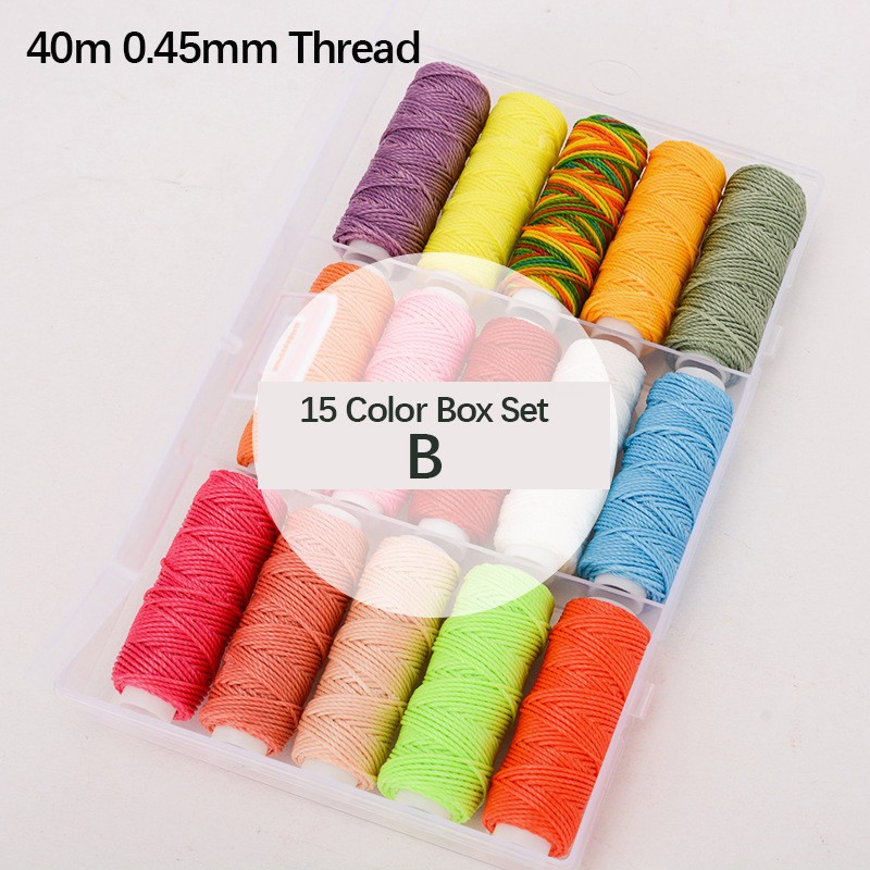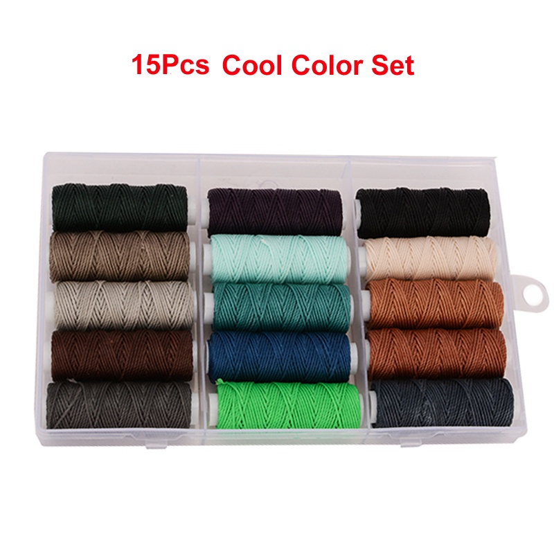 15Pcs Wax Thread Set Waxed Cords Polyester Leather Sewing Thread Wax Strings for Macrame DIY Bracelets Making Bookbinding Handcraft or Leather Projects