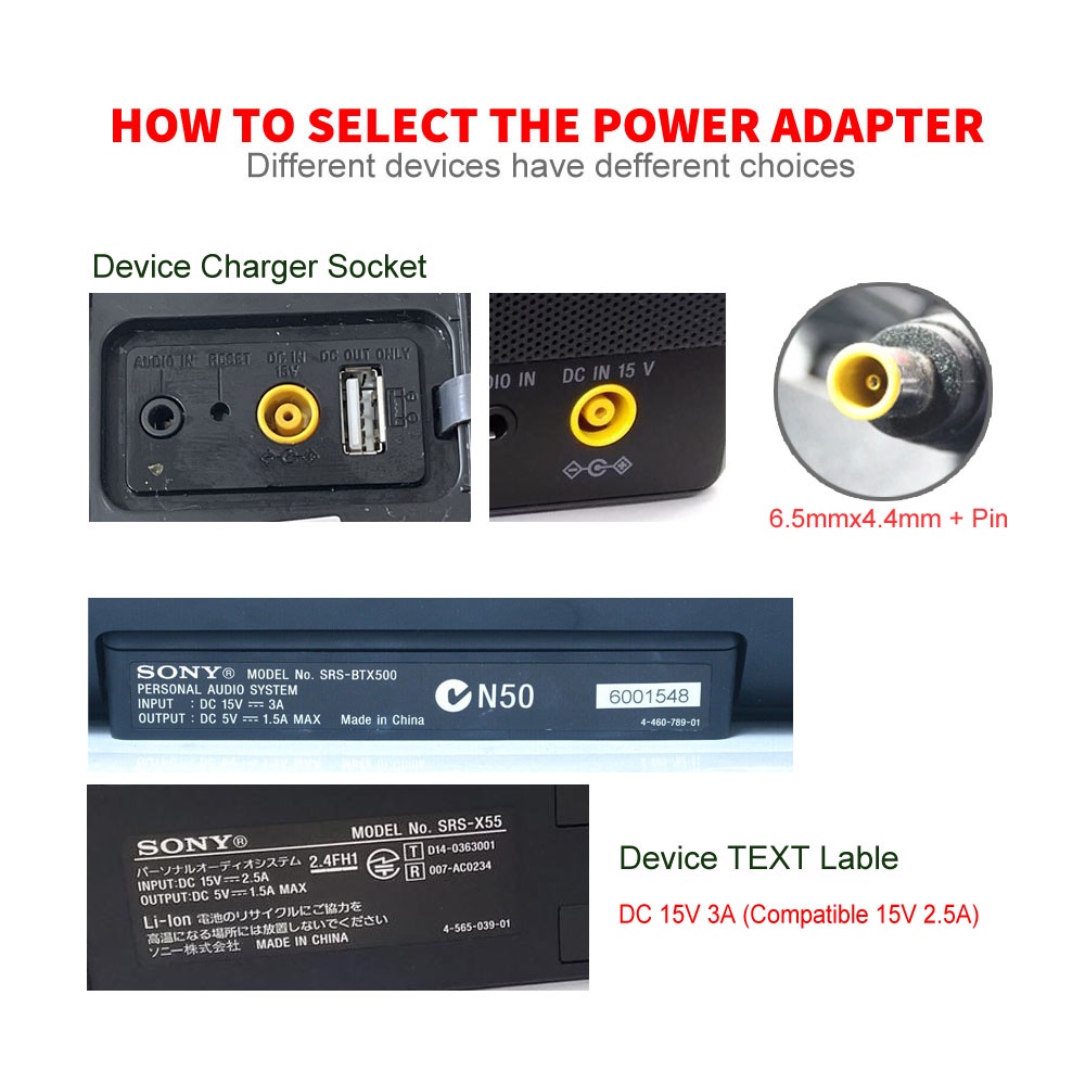 15V 3A 2.5A AC/DC Power Adapter AC-E1525M AC-E1530 for Sony SRS-XB3 SRS-X55 LF-S80D SRS-BTX500 SRS-Z1000 Portable Wireless Bluetooth Speaker Audio System