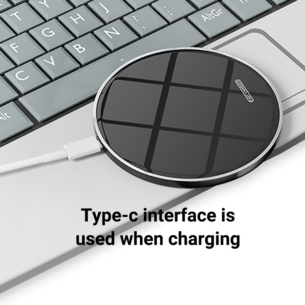 15W Type C Interface Wireless Charger Convenient Black Mirror Texture Charger Neat Deskto Charging