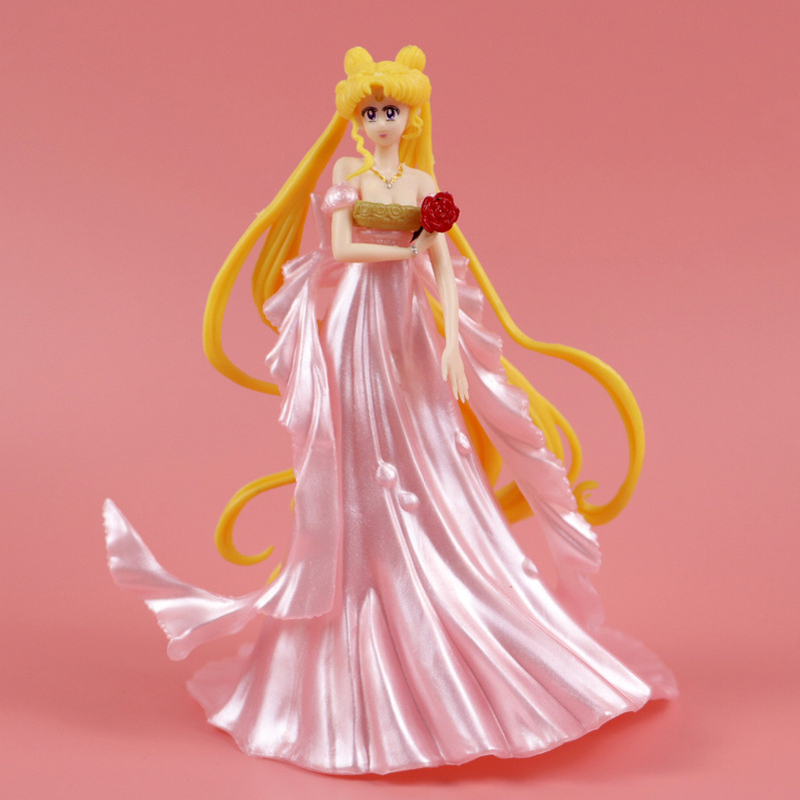 15cm Sailor Moon Anime Figure Tsukino Usagi Princess Serenity Neo-Queen Serenity White Pink Skirt Cake Decoration PVC Action Figures Model Doll Toys Kids Gifts