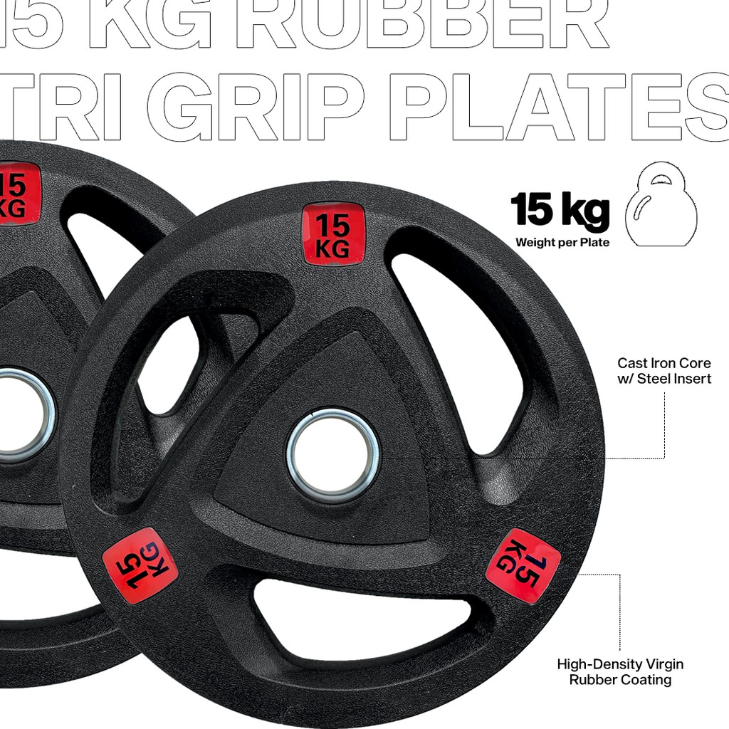 15kg (PAIR / 2 PCS) Rubber Tri Grip Olympic Plate | Rubber Coated Plates