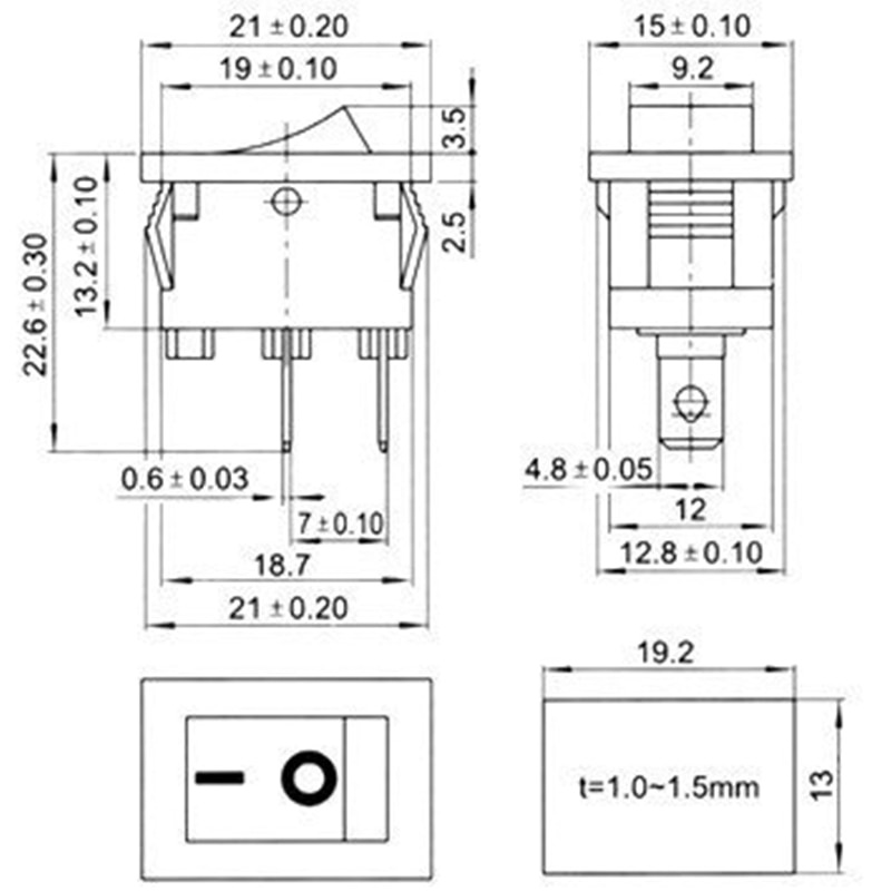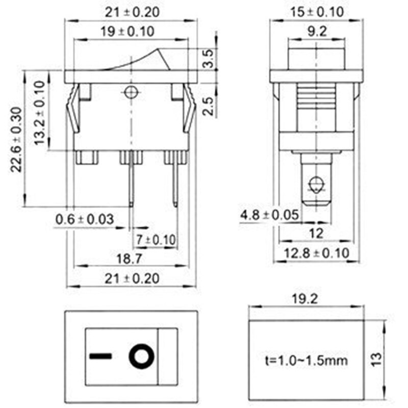 15pcs Mini Rocker Switch SPST Black and Red Snap in Switches Button AC 250V 3A / 125V 6A 2 Pin I/O 10*15mm On-off Switch Rocker