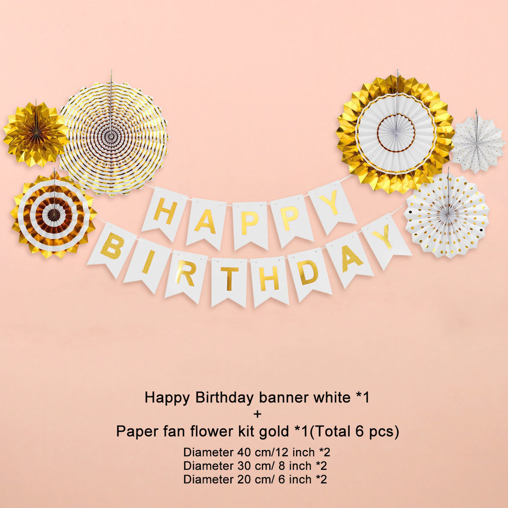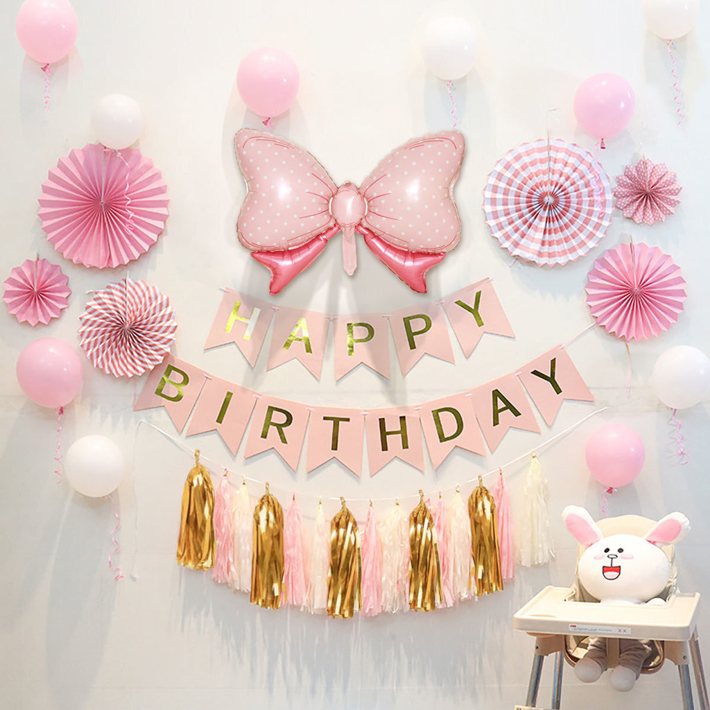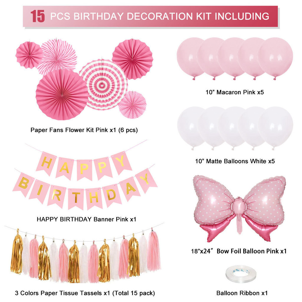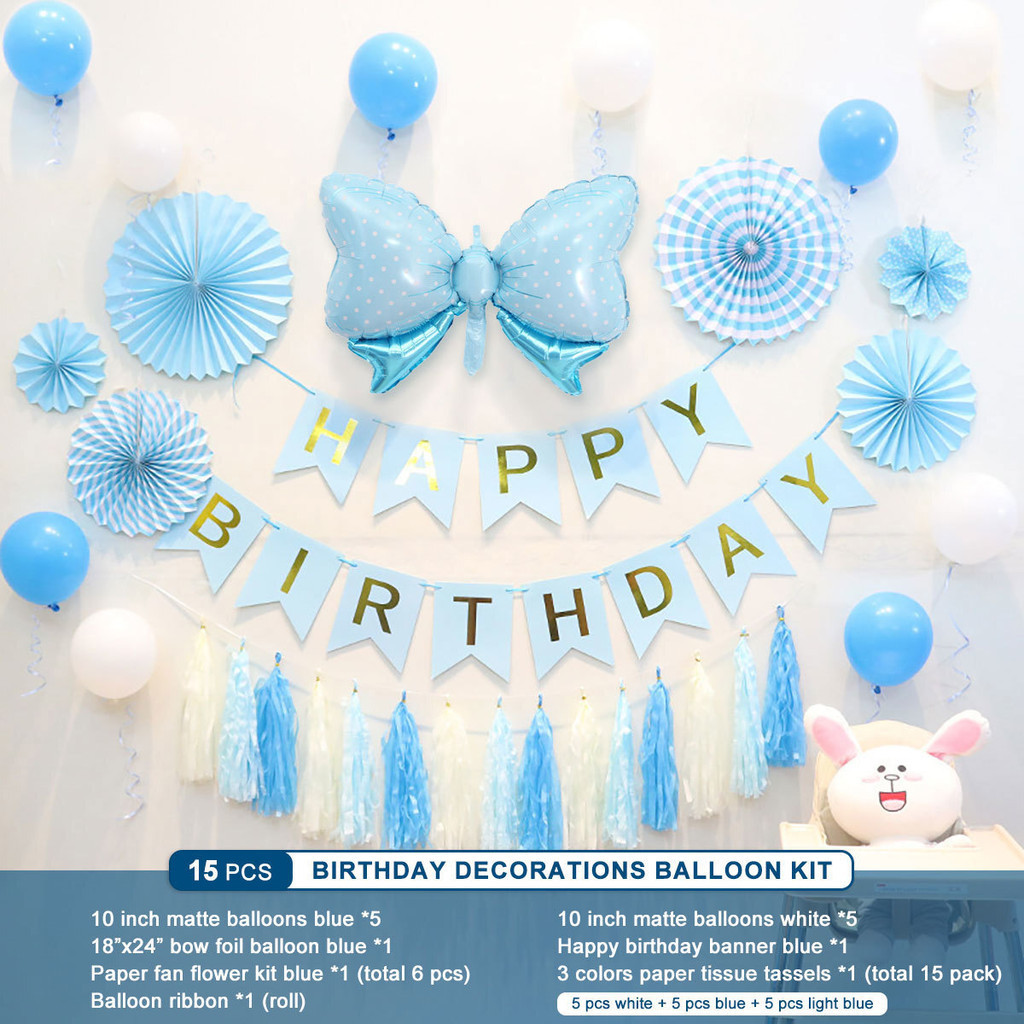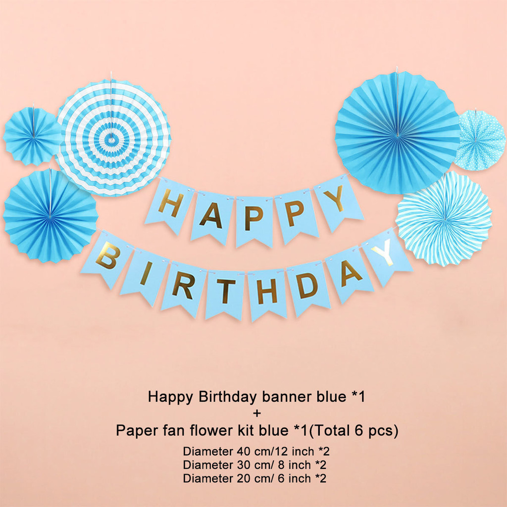 15pcs Party Decorations Set For Happy Birthday Banner Paper Tassel Fan Flower Balloon Bithday Decor