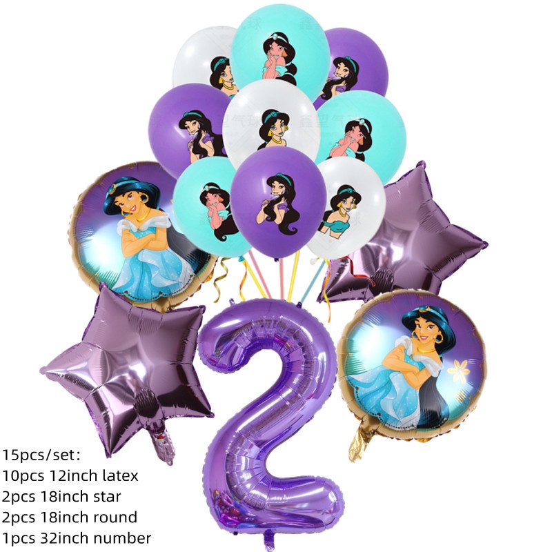 15pcs/Set Princess Jasmine Foil Balloon 32inch Number Balloons Birthday Baby Shower Party Decoration Supplies Girl Gifts
