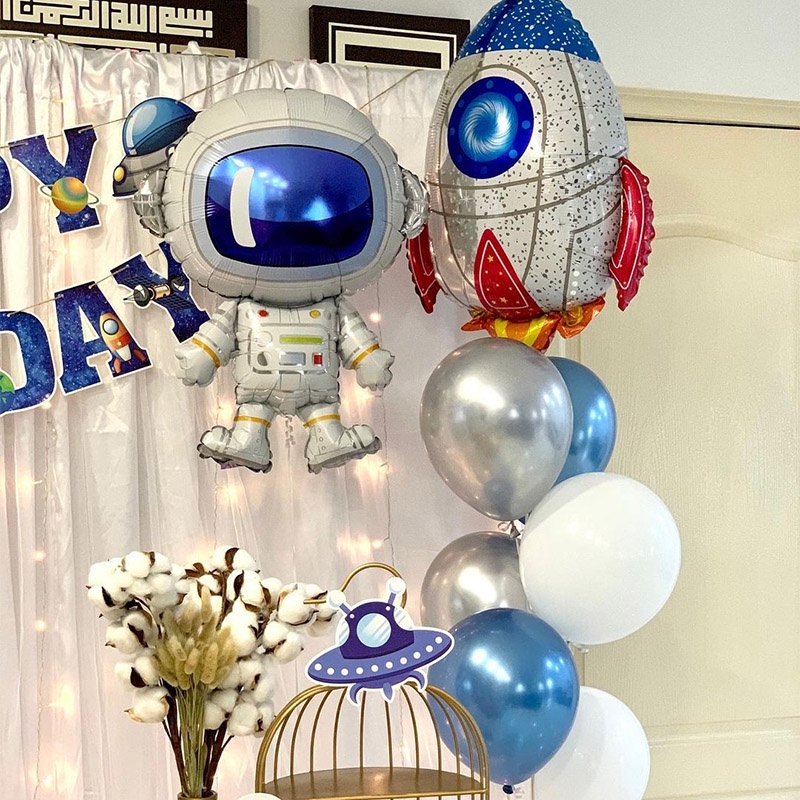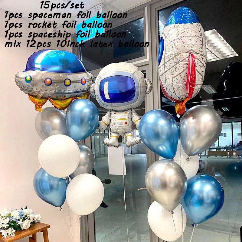 15pcs/set Astronaut Rocket Balloon Kit Outer Space Theme Decoration Happy Birthday Banner Baby Shower Kids Party Supplies Globos