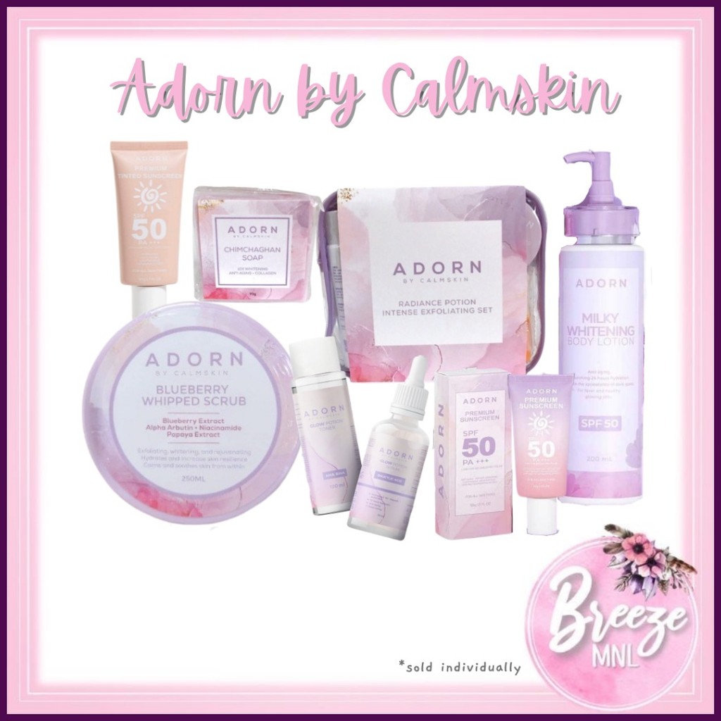▮ ▖ — ADORN By Calmskin Blueberry Whipped Scrub Chimchaghan Soap Sunscreen or Radiance Potion Set
