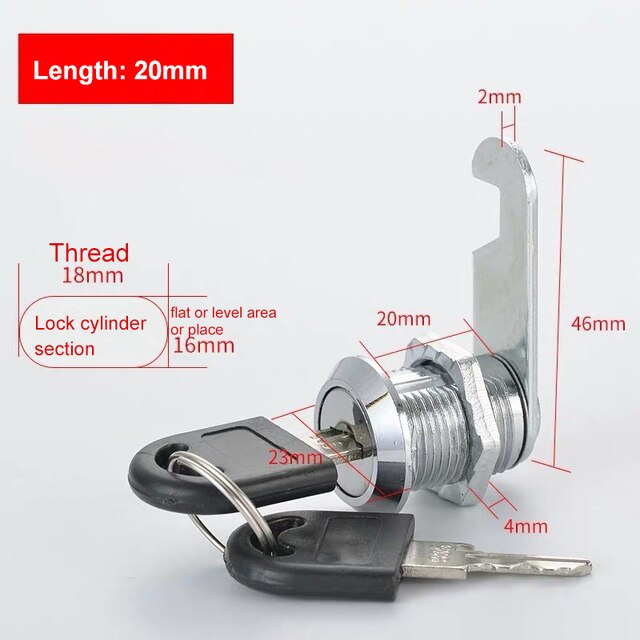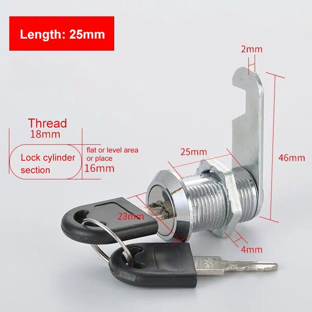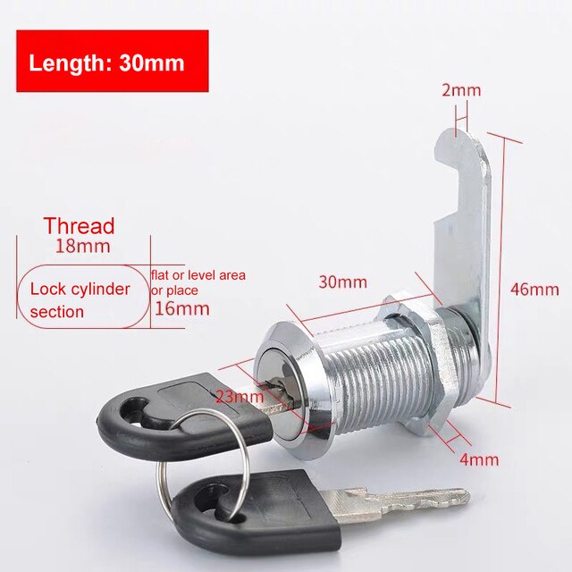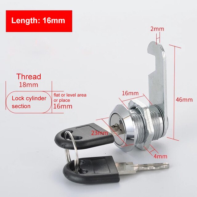 16/20/25/30mm Drawer Cabinet Lock With 2 Keys Cam Lock Single Open Security File Cabinet Mailbox Loc