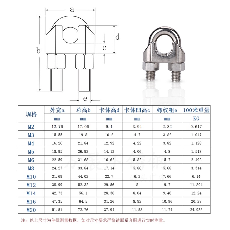 16-20mm Stainless Steel Wire Rope Clamp Thim Screw Buckle 304 Marine Cable