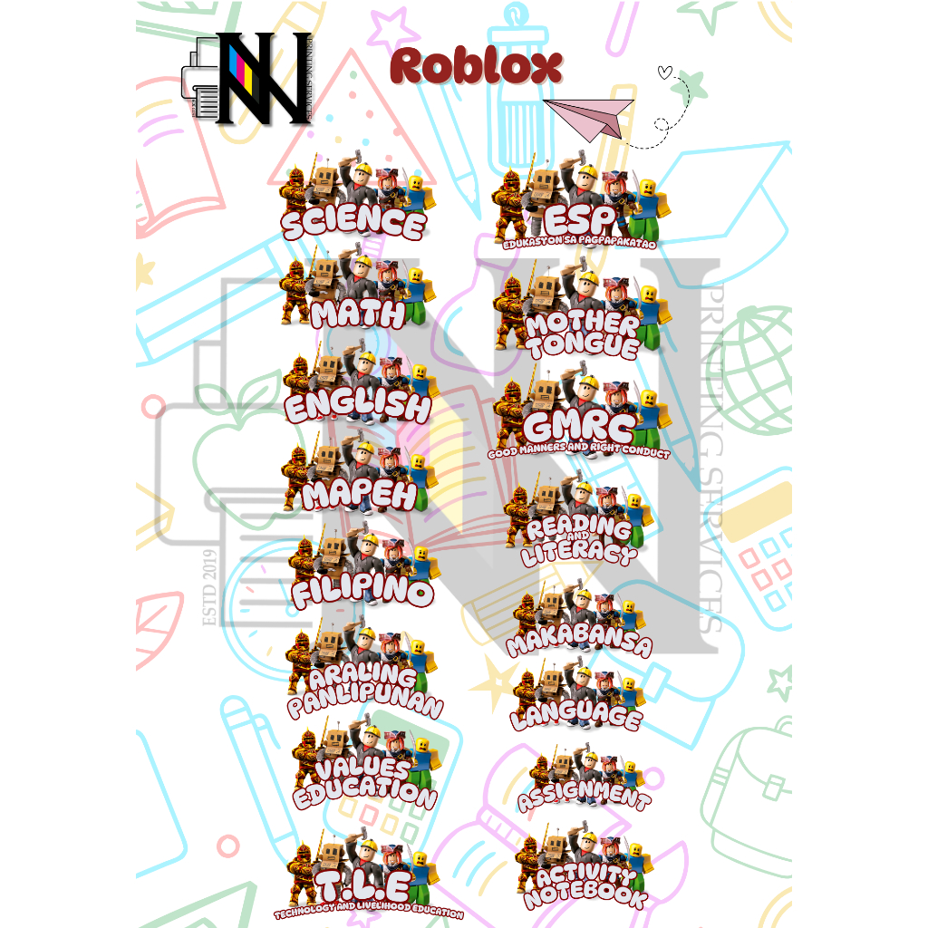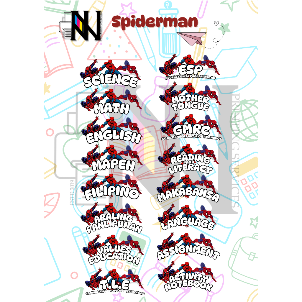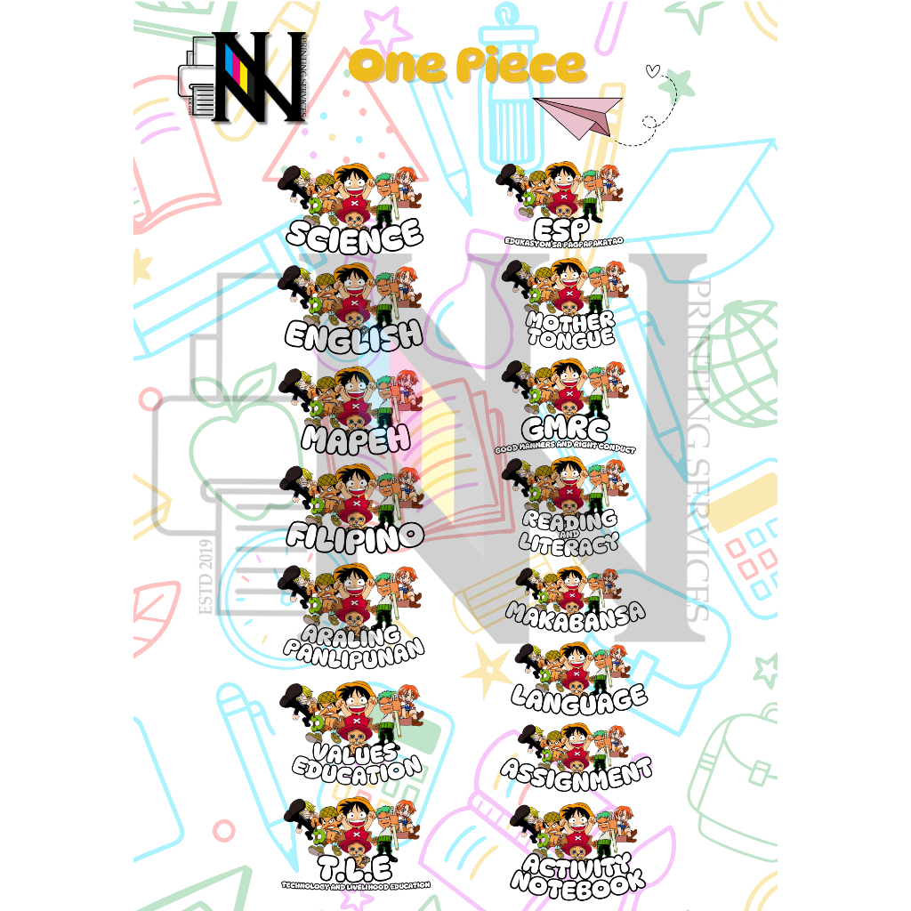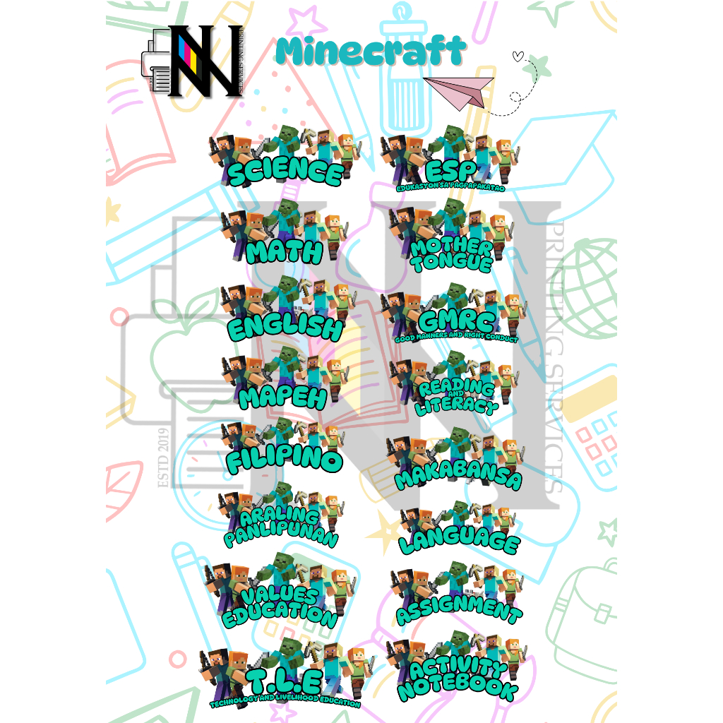 16 ANIME/GAME DESIGN CHARACTER SUBJECT LABELS FOR SCHOOL LUFFY MINECRAFT ROBLOX SPIDERMAN