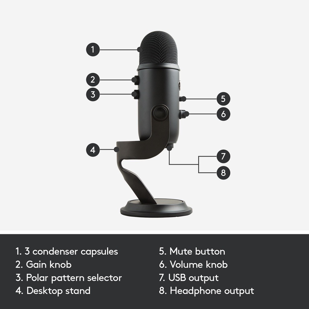 Blue Yeti Professional Multi-pattern USB Condenser Microphone for Recording Streaming