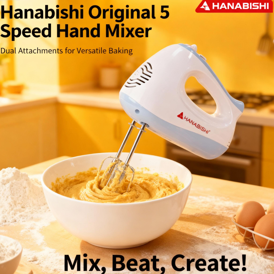 HANABISHI HAND MIXER (5 SPEED) for baking / beater / dough hook / Turbo (HHM-51)