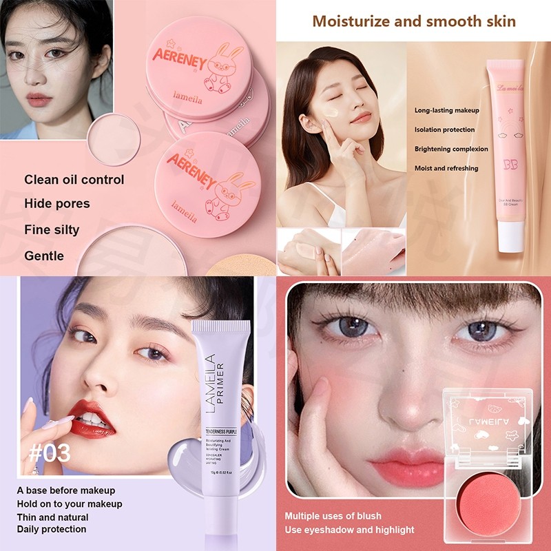 Lameila 38 Pieces Face Makeup Cosmetic Set Eyeliner Lipstick Eyeshadow Makeup Brush BB Cream Sunscr