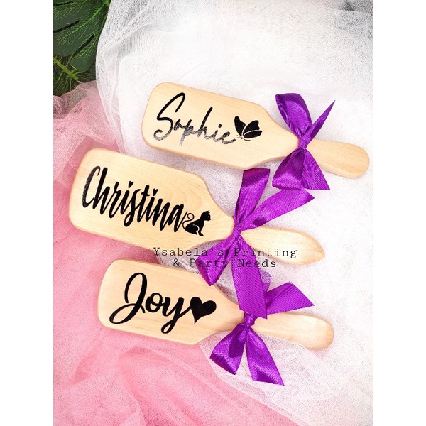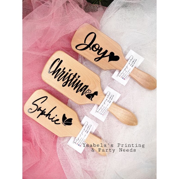 PERSONALIZED WOODEN PADDLE BRUSH SOUVENIR/TOKEN