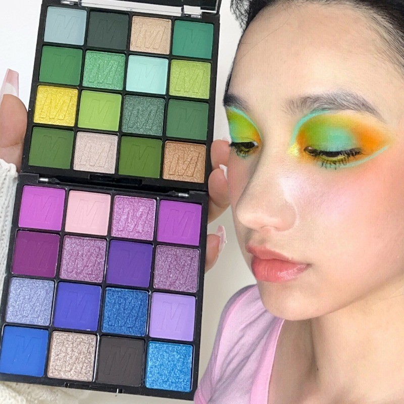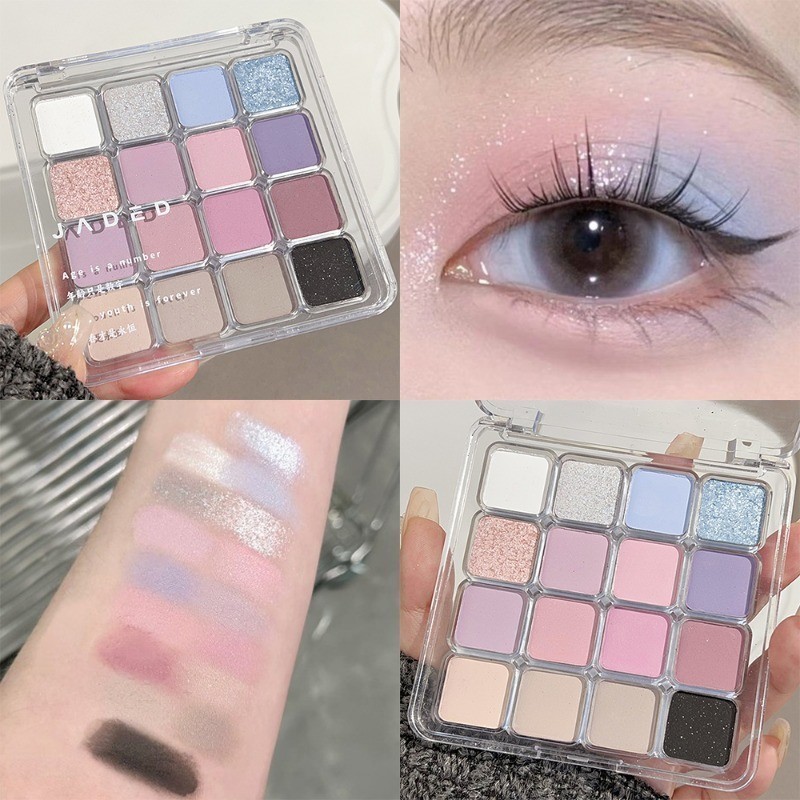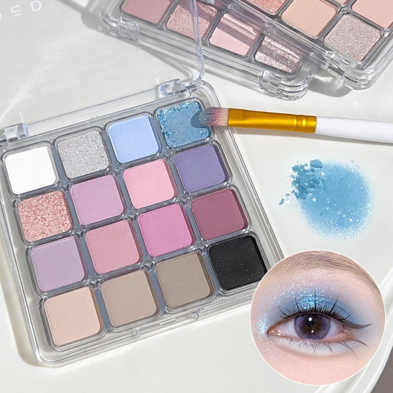 16 Colors Green Red Blue Eyeshadow Palette Matte Glitter Pearlescent Powder Delicate Easy To Clear Shimmer Eye Shadow Cosplay Make Up